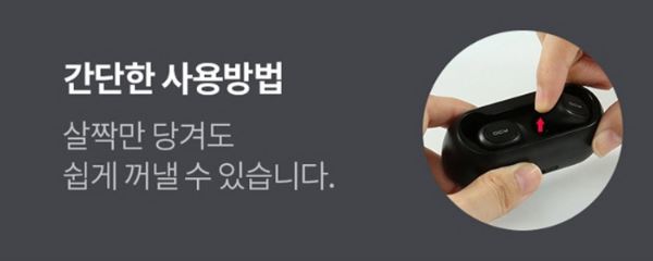 버튼을 한번 누르면 음악이 재생되고 충전 케이스에 보관을 하면 전원이 자동으로 종료 됩니다