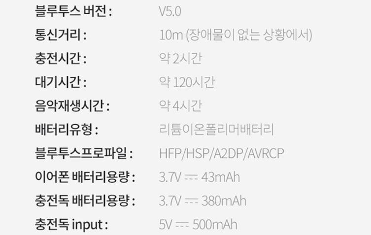 이어폰 배터리용량 : 3.7V 43mAh