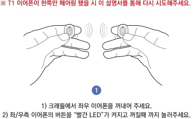 ※T1 이어폰이 한쪽만 페어링 됐을 시 이 설명서를 통해 다시 시도해주세요