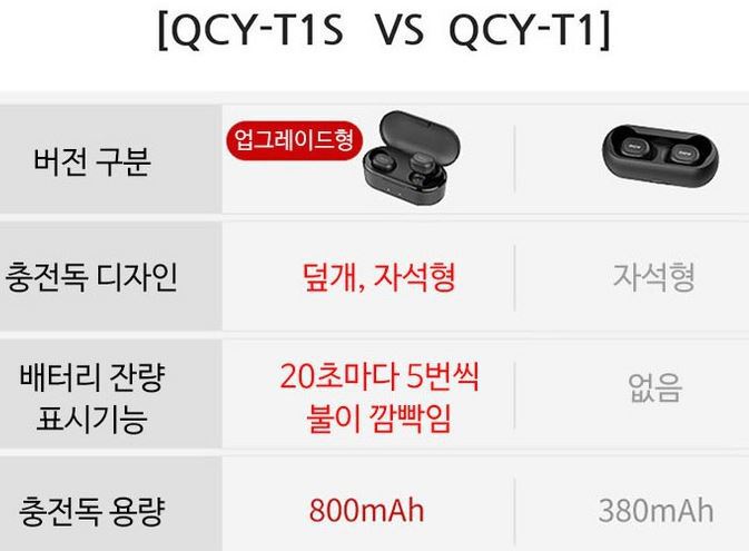 QCY-T1S, QCY-T1 비교