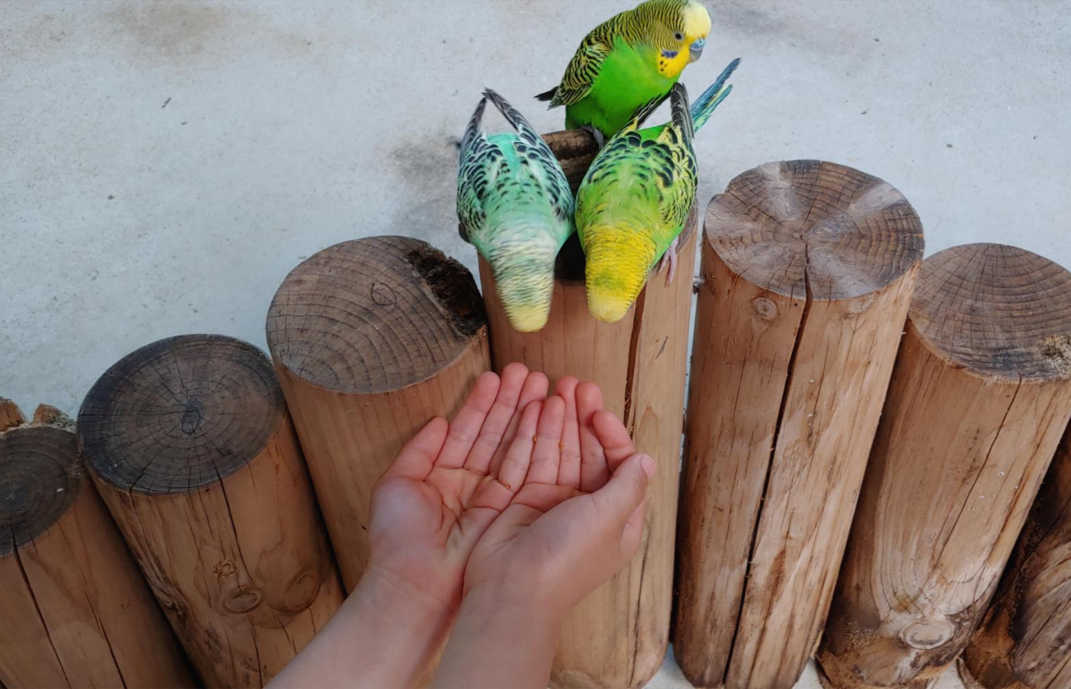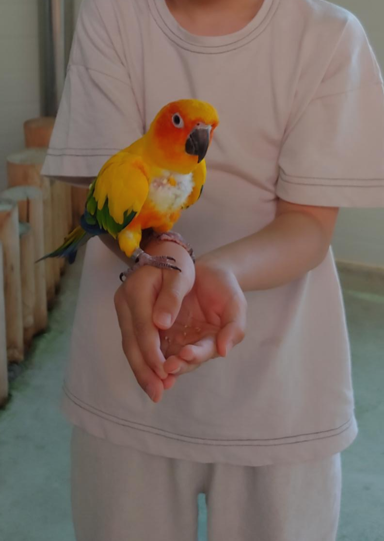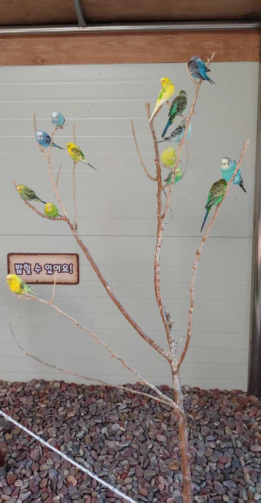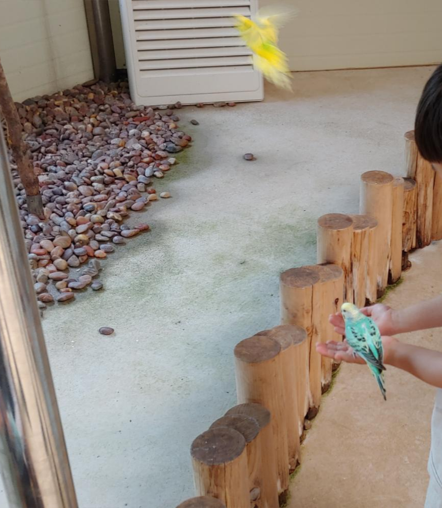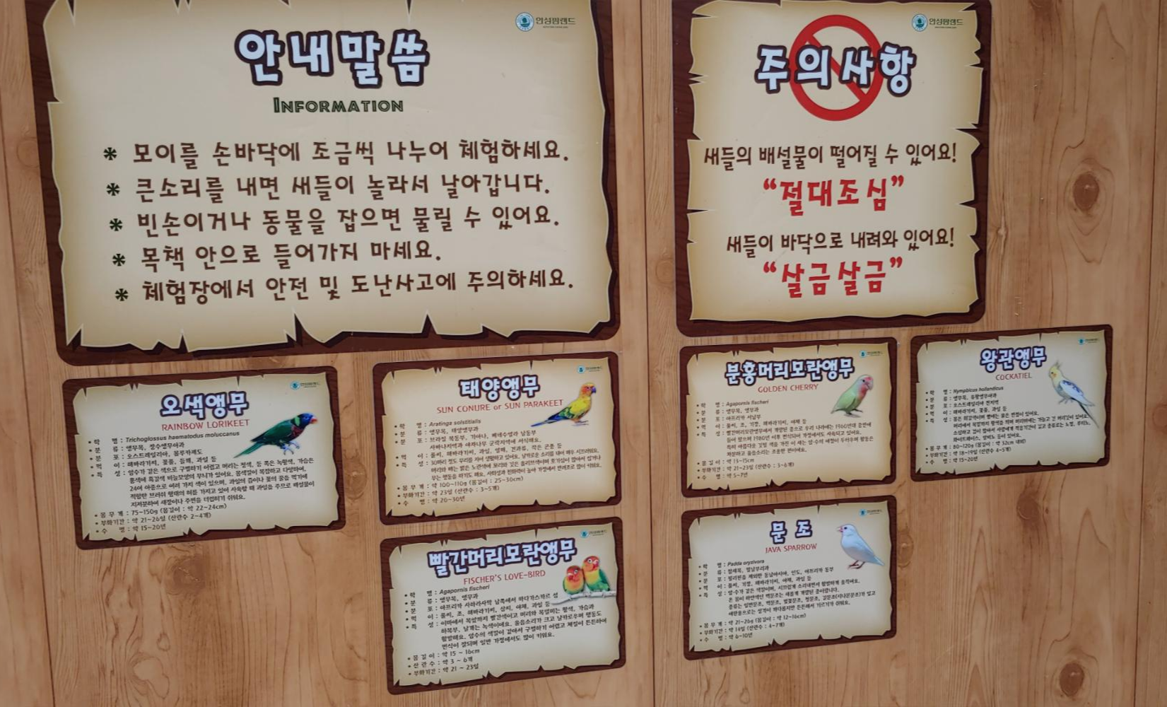새들이 있는 건물에 들어가면 먹이를 손에 올려두면 새들이 날아와 먹이를 먹어서 아이들이 체험하기 좋습니다