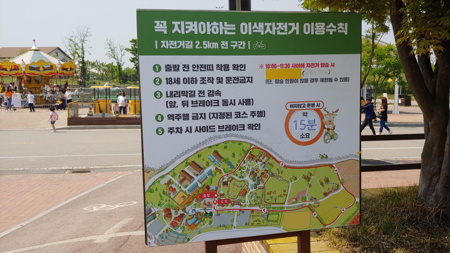놀이기구는 무료 이용이 아닌 근처 매표소에서 이용권을 구매해서 유료로 이용이 가능 했으며 보통 4~5분 정도 이용이 가능 했습니다