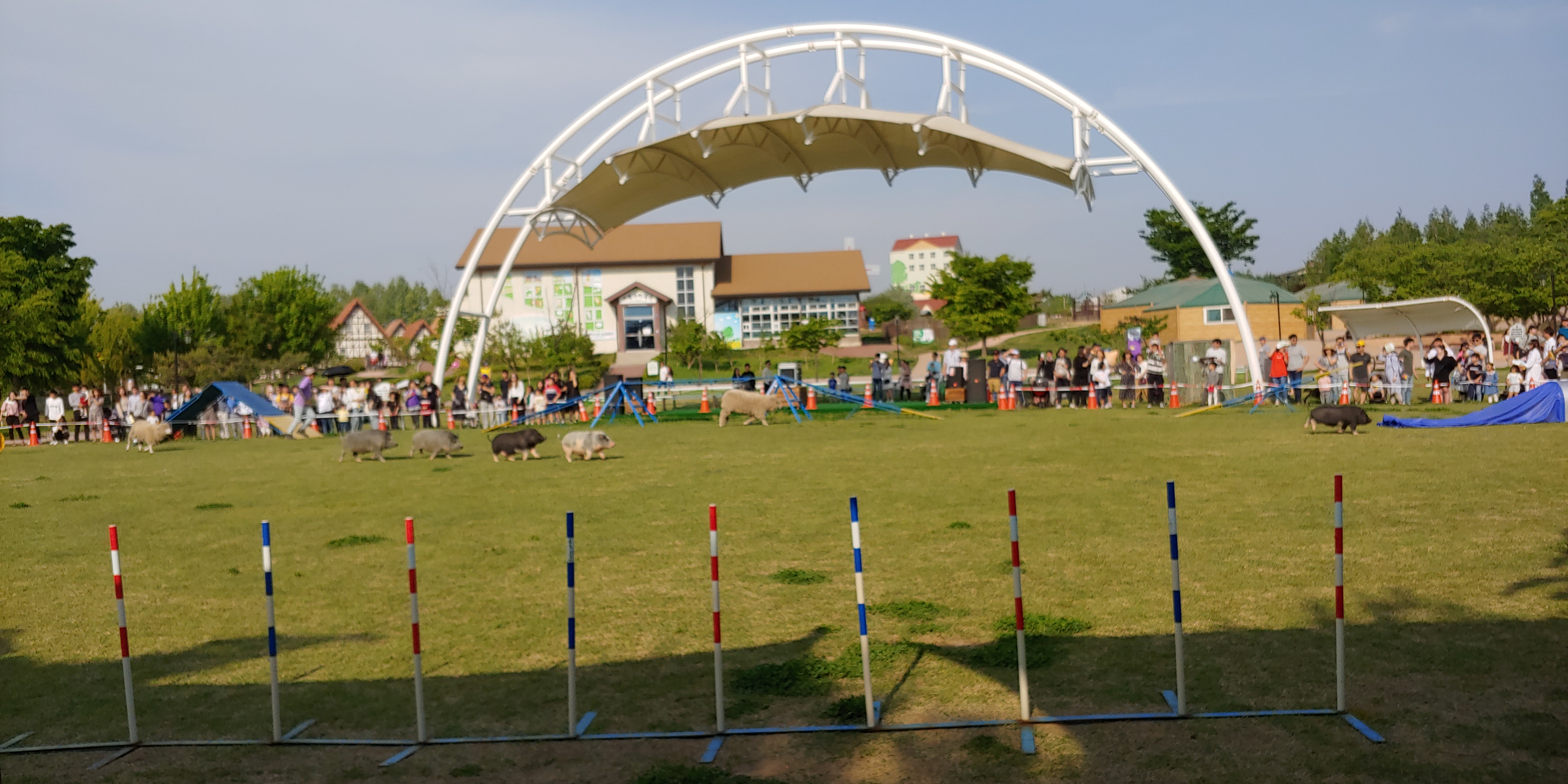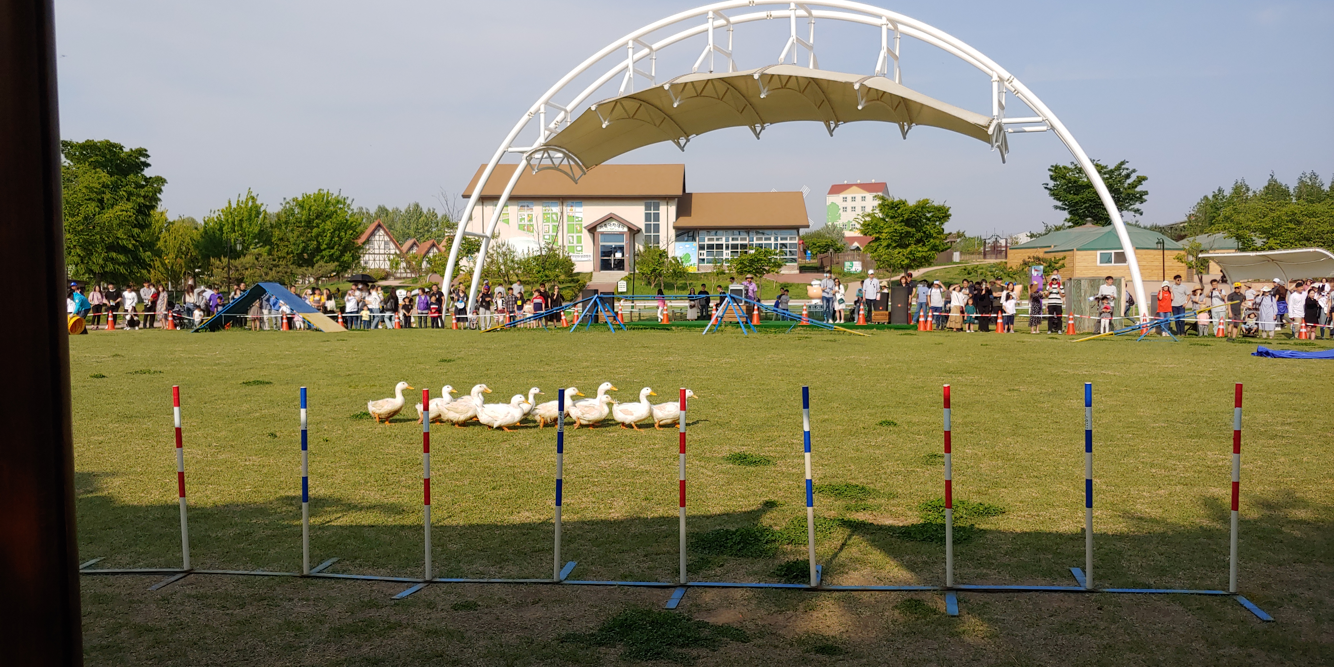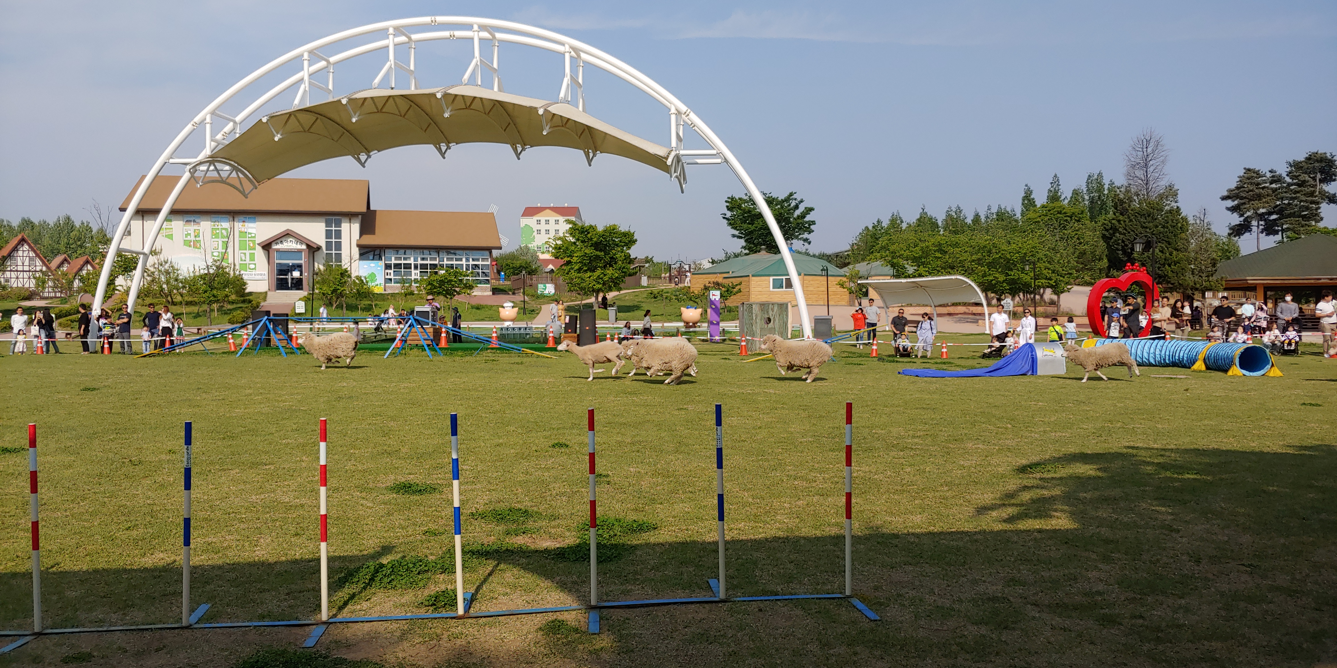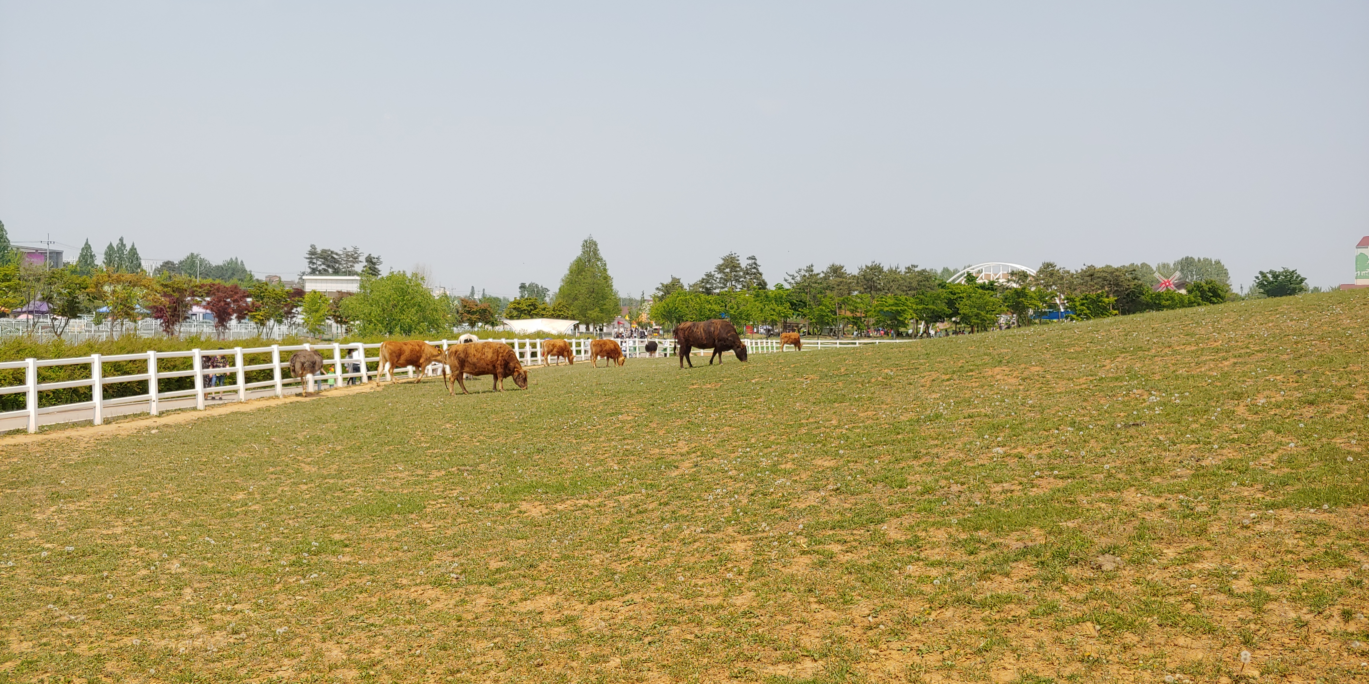 연 날리기를 하다가 넓은곳에 있는 소와 타조를 보면서 동물들 공연을 하는곳으로 이동 했습니다
