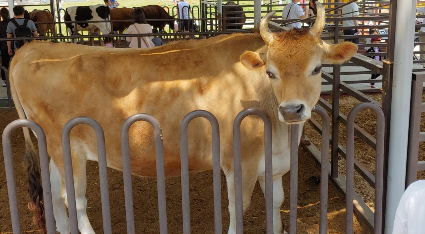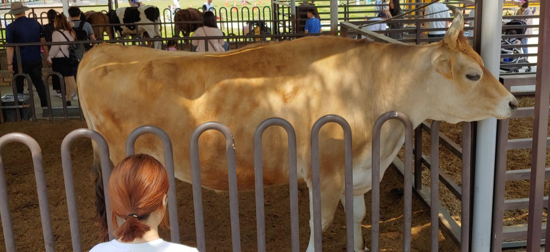 눈화장을 한듯하게 엄청 큰 소가 있는데 입구쪽에 영국의 젖소라고 되어있습니다