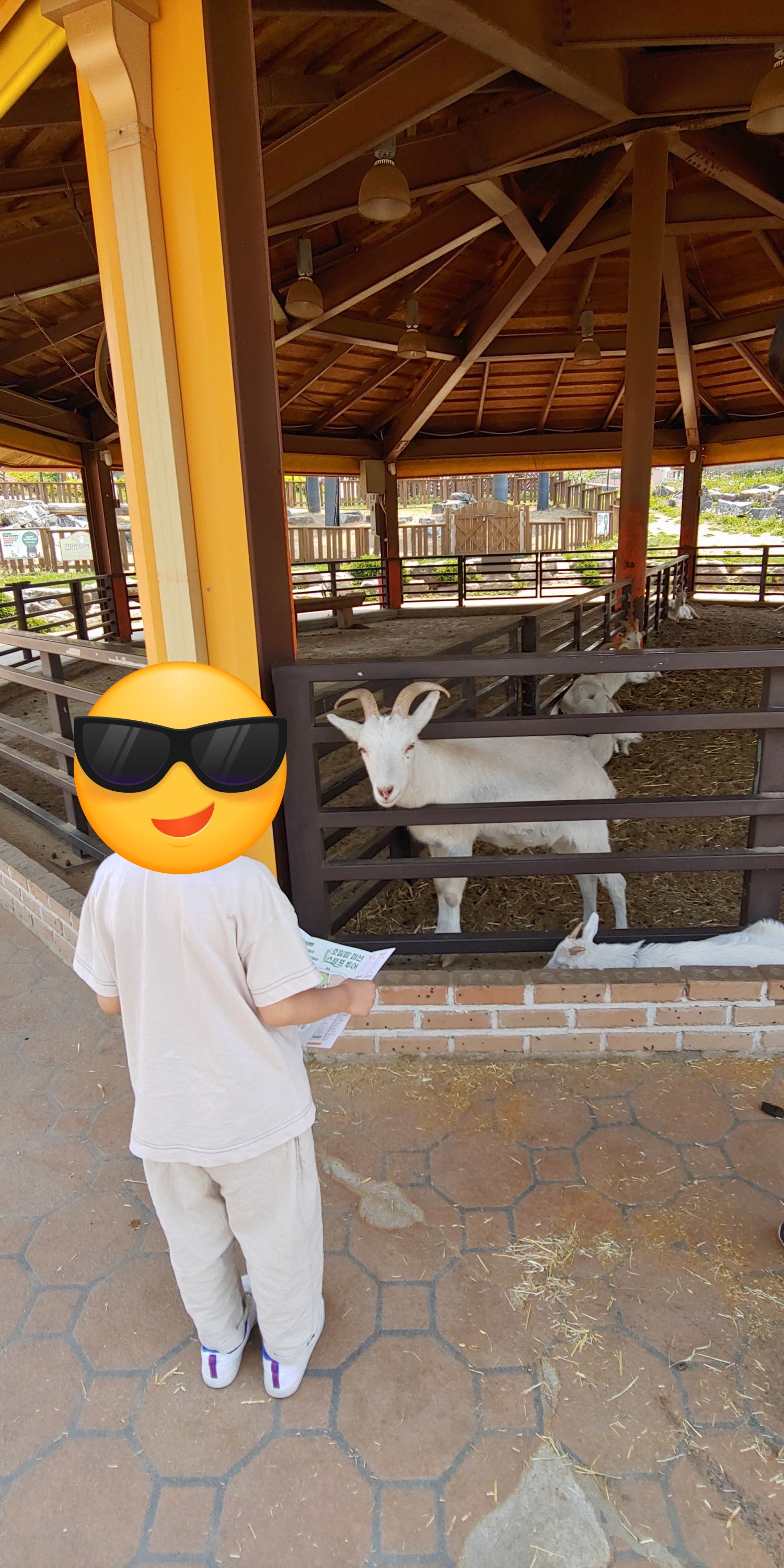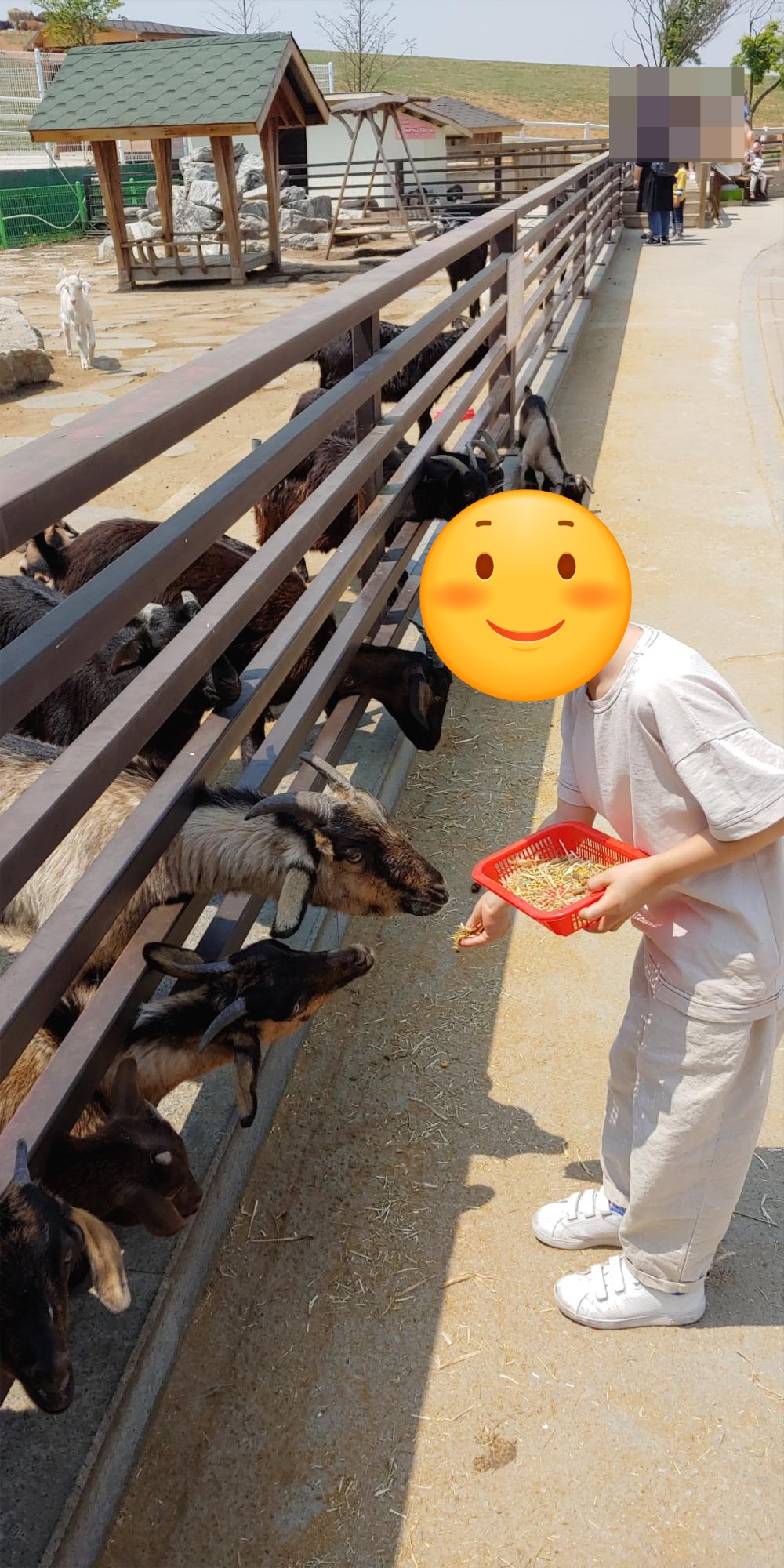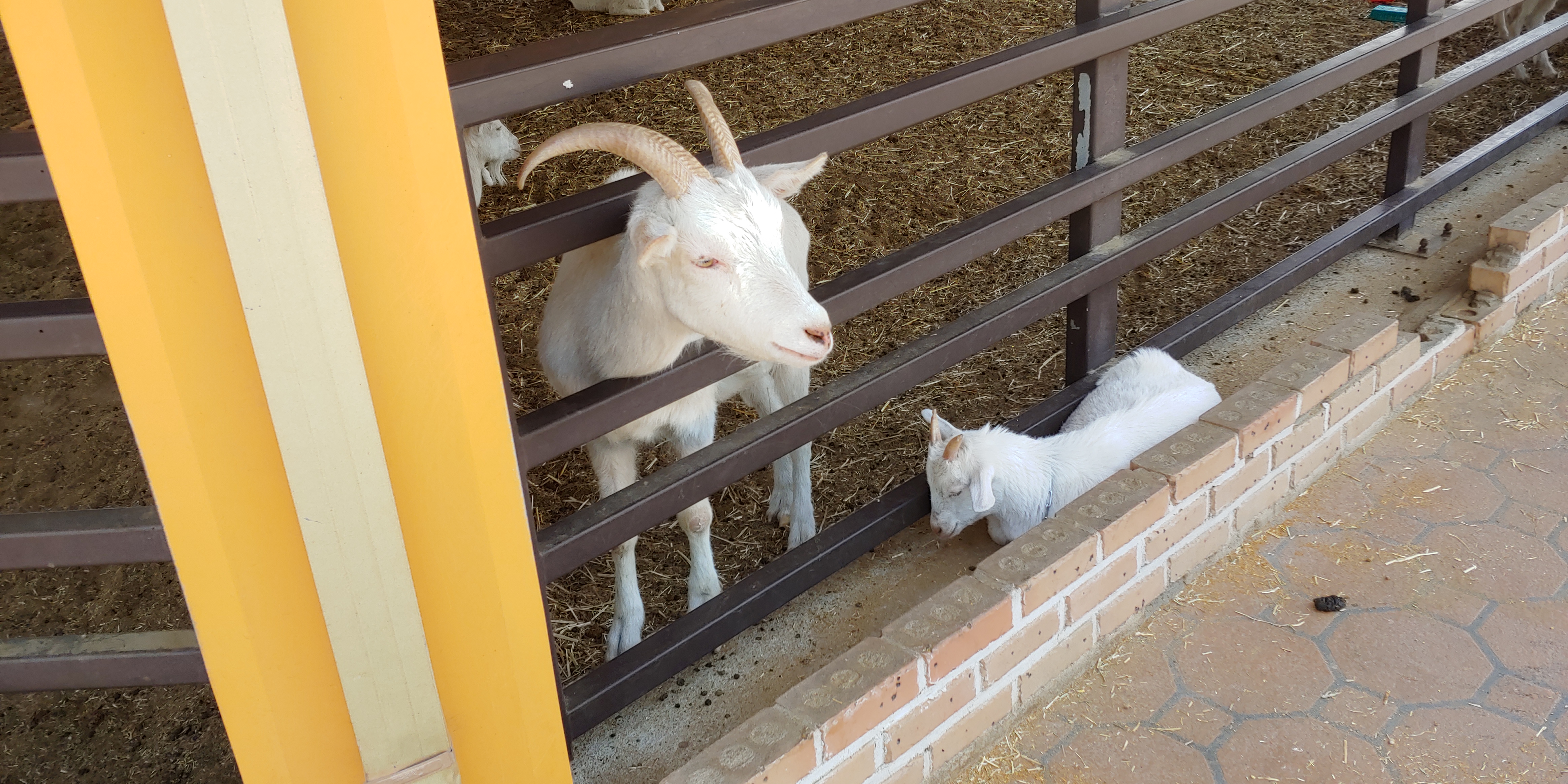 먹이 판매하는곳 바로 앞 염소 2마리가 누워서 먹이를 주면 받아 먹었습니다