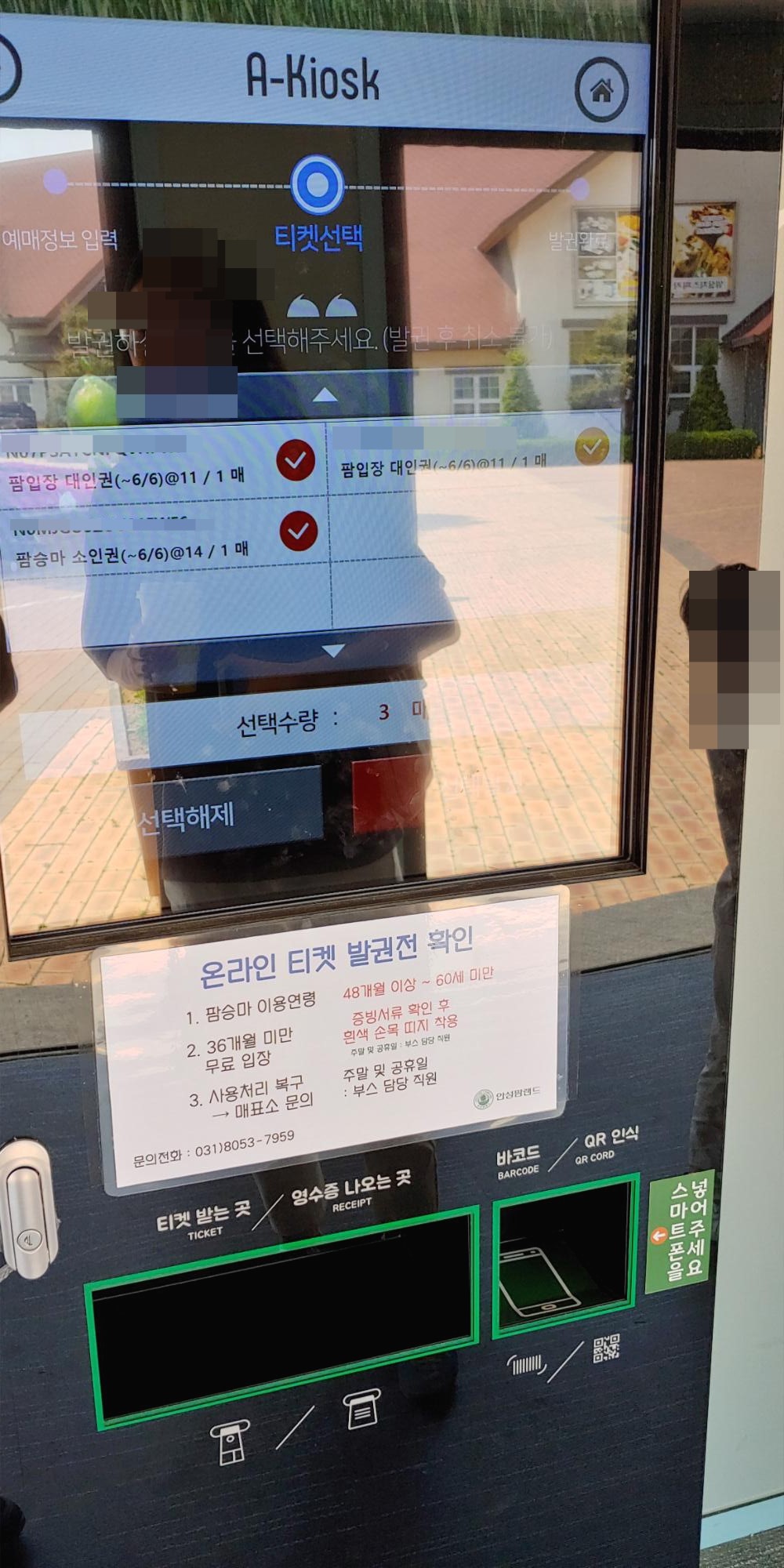 QR코드를 화면 아래 오른쪽에 넣으면 인식을 하고 예약한 티켓 확인 후 발권을 하시면 출력되어 나옵니다
