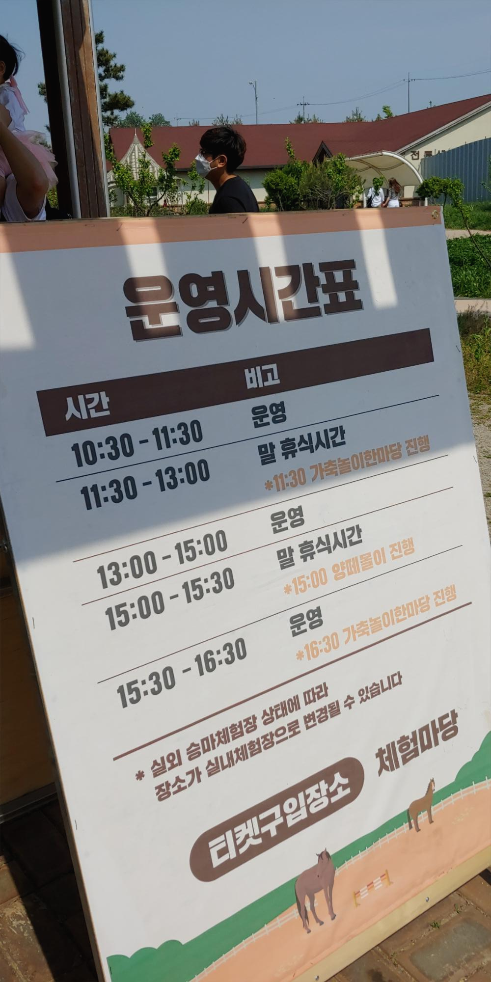 체험 승마시 운영 시간과 휴식시간이 정해져 있으니 확인을 하고 줄을 서는게 좋습니다