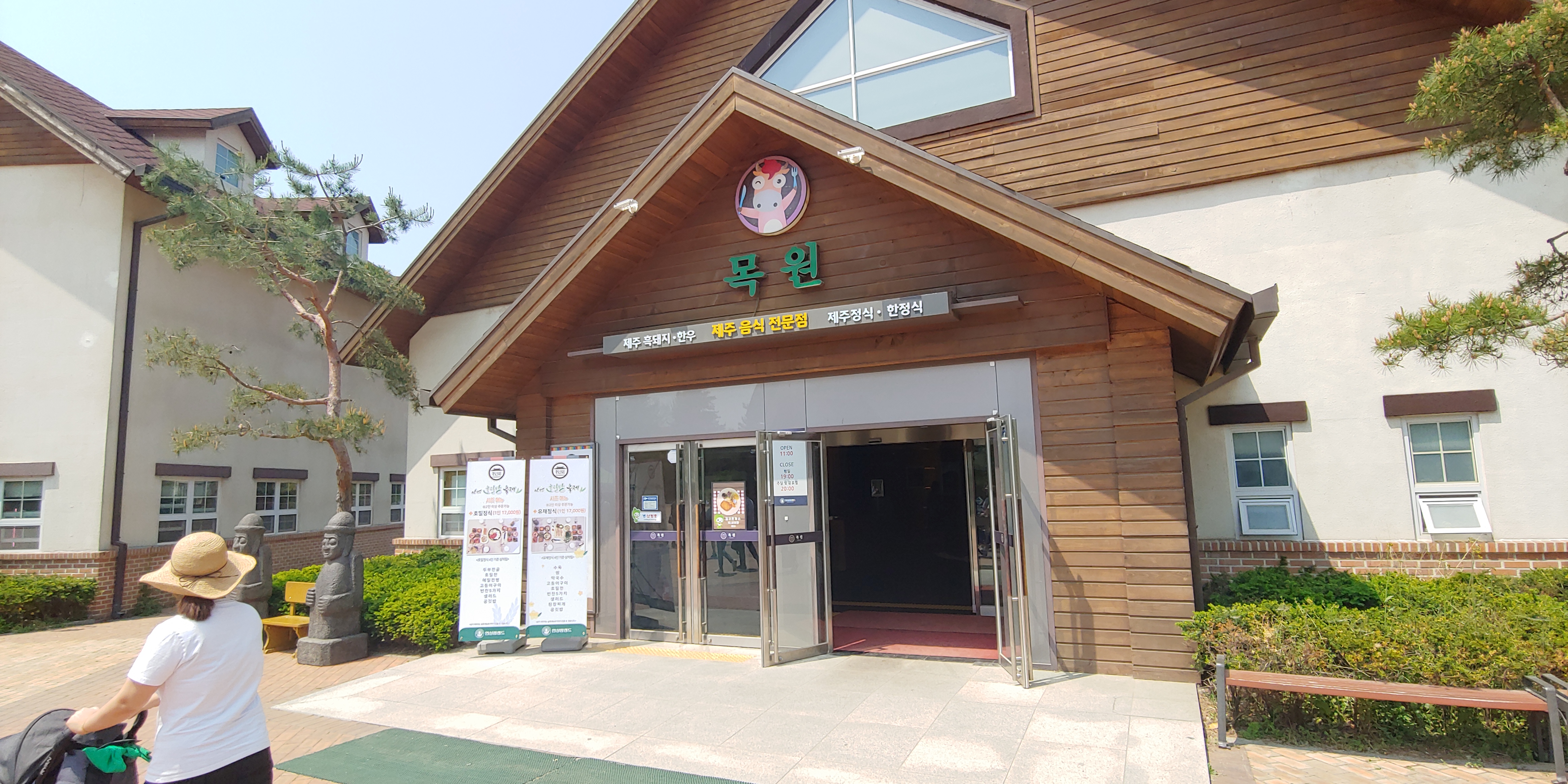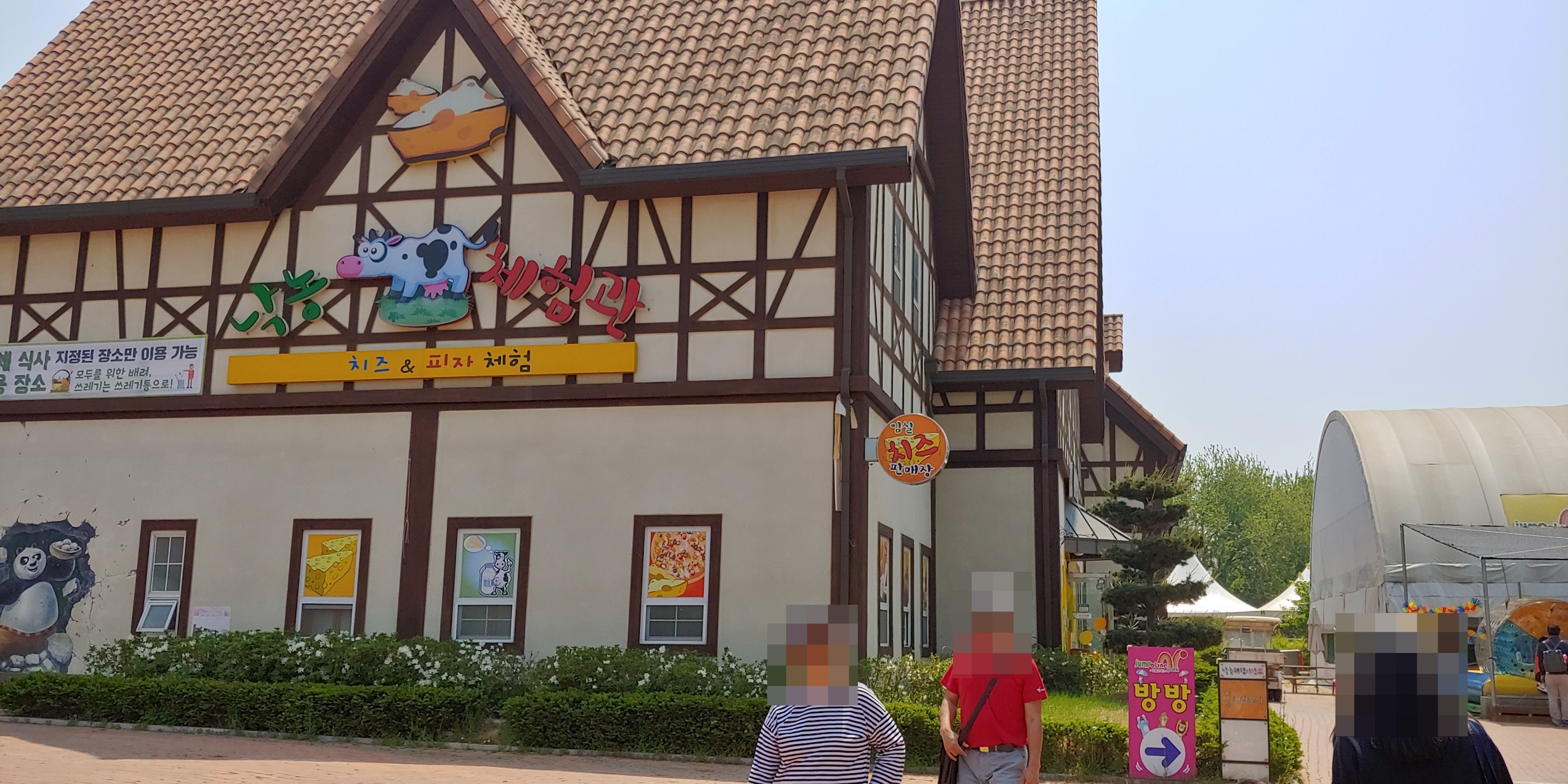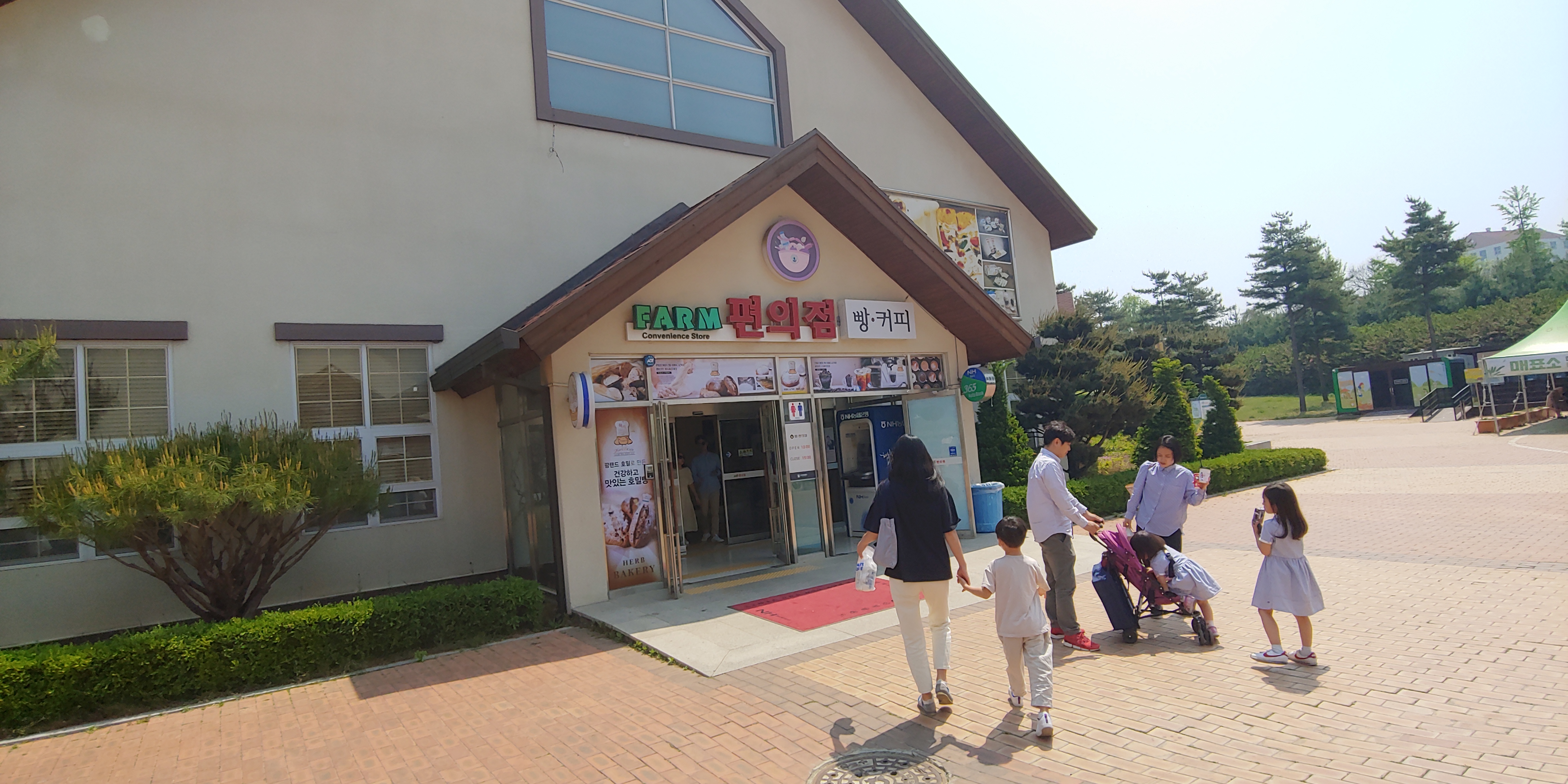 안성 팜랜드 주차장에서 매표소로 걸어가는 길에 식당 및 편의점이 있습니다