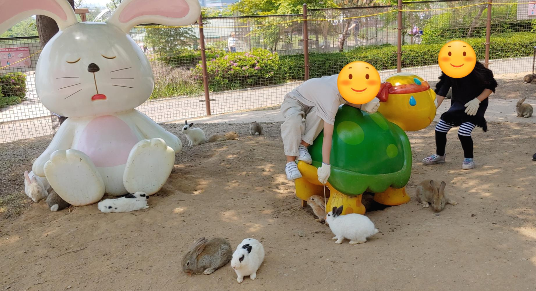 체험 승마를 하고 난 뒤 큰 당근을 구매해서 토끼 마을로 가서 주니 더 오래동안 먹이를 줄 수 있었습니다