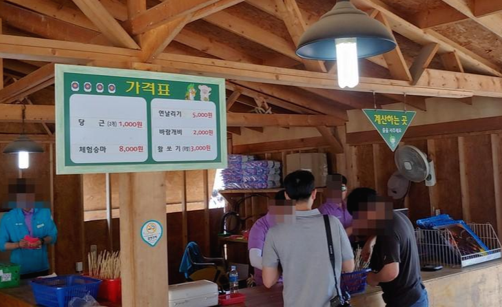 주변 동물들의 근처에는 먹이를 판매하는 곳이 있었고 1,000원 이었습니다