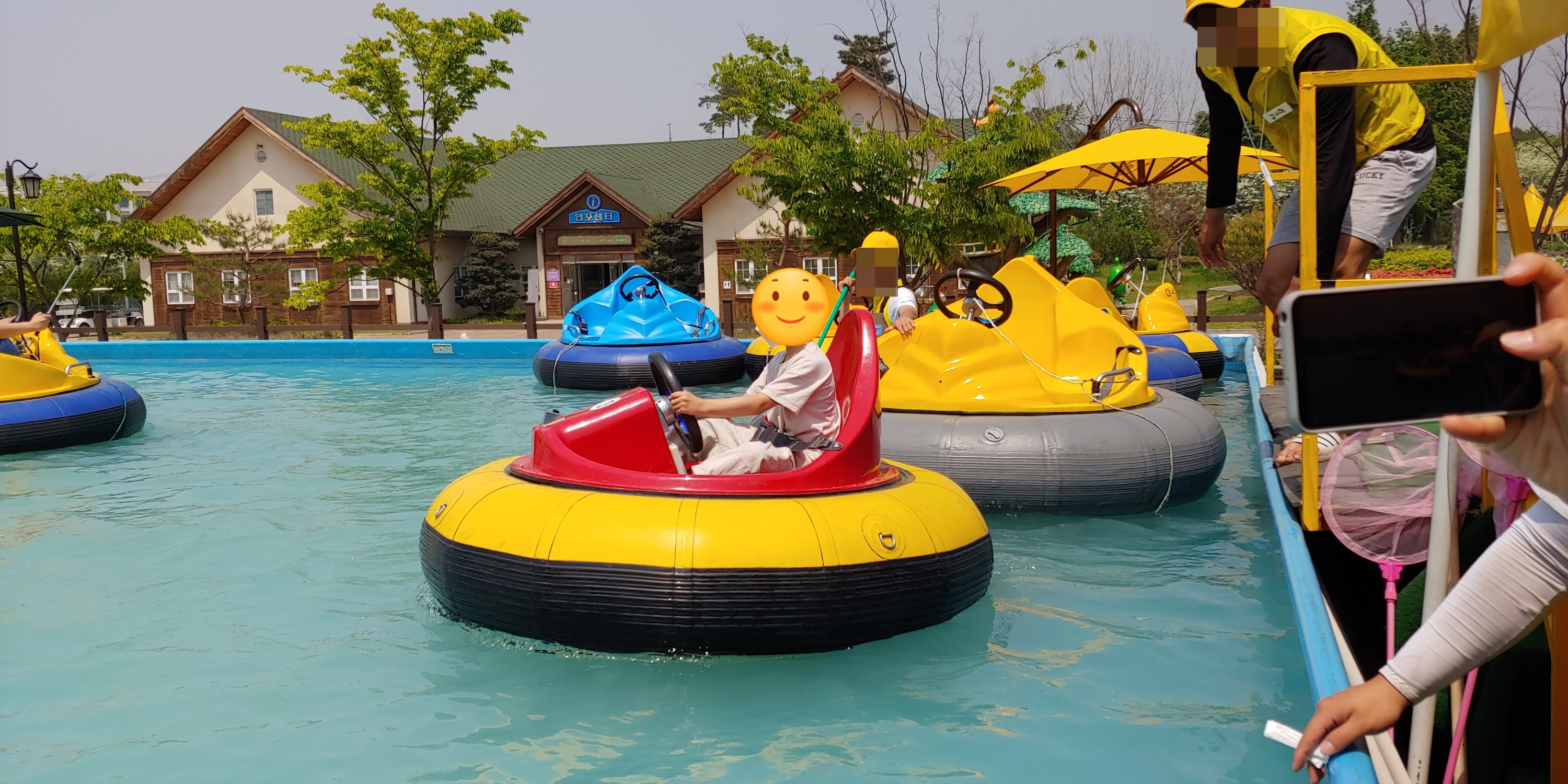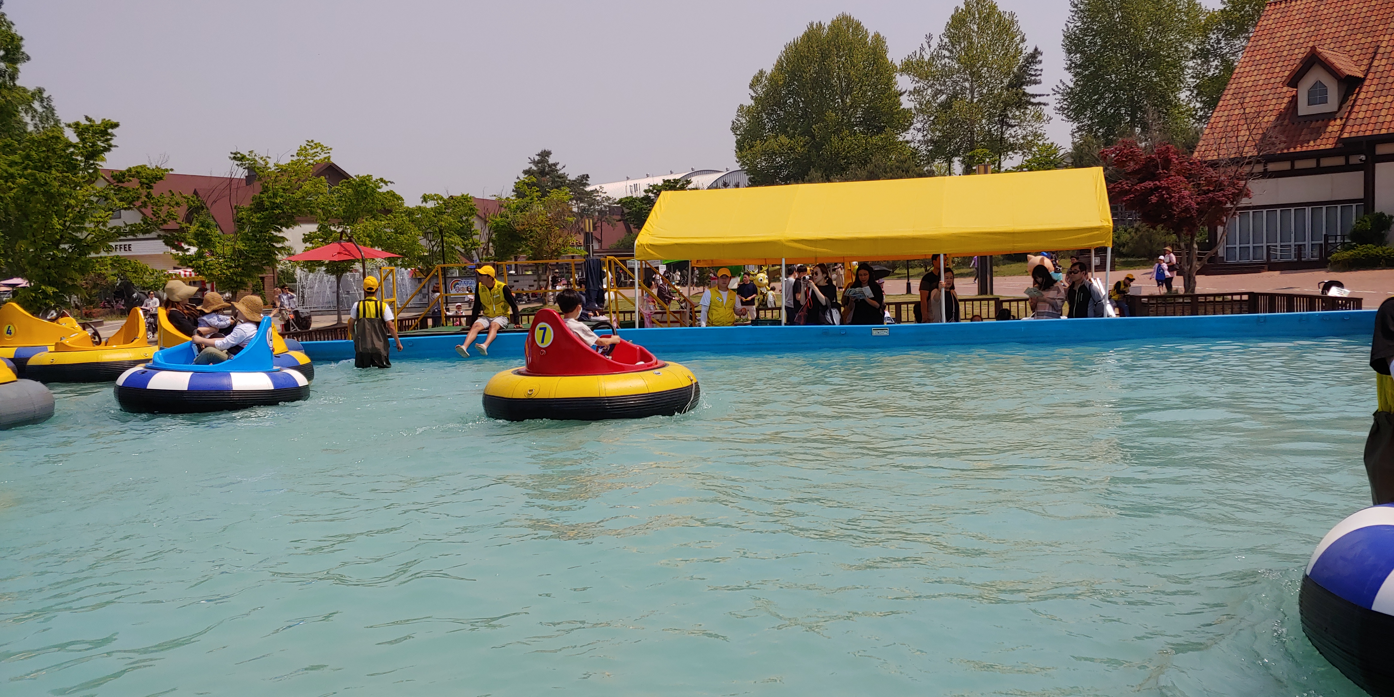 꼬마 자동차 바로 옆에 있는 워터 범퍼가 인기가 많았습니다