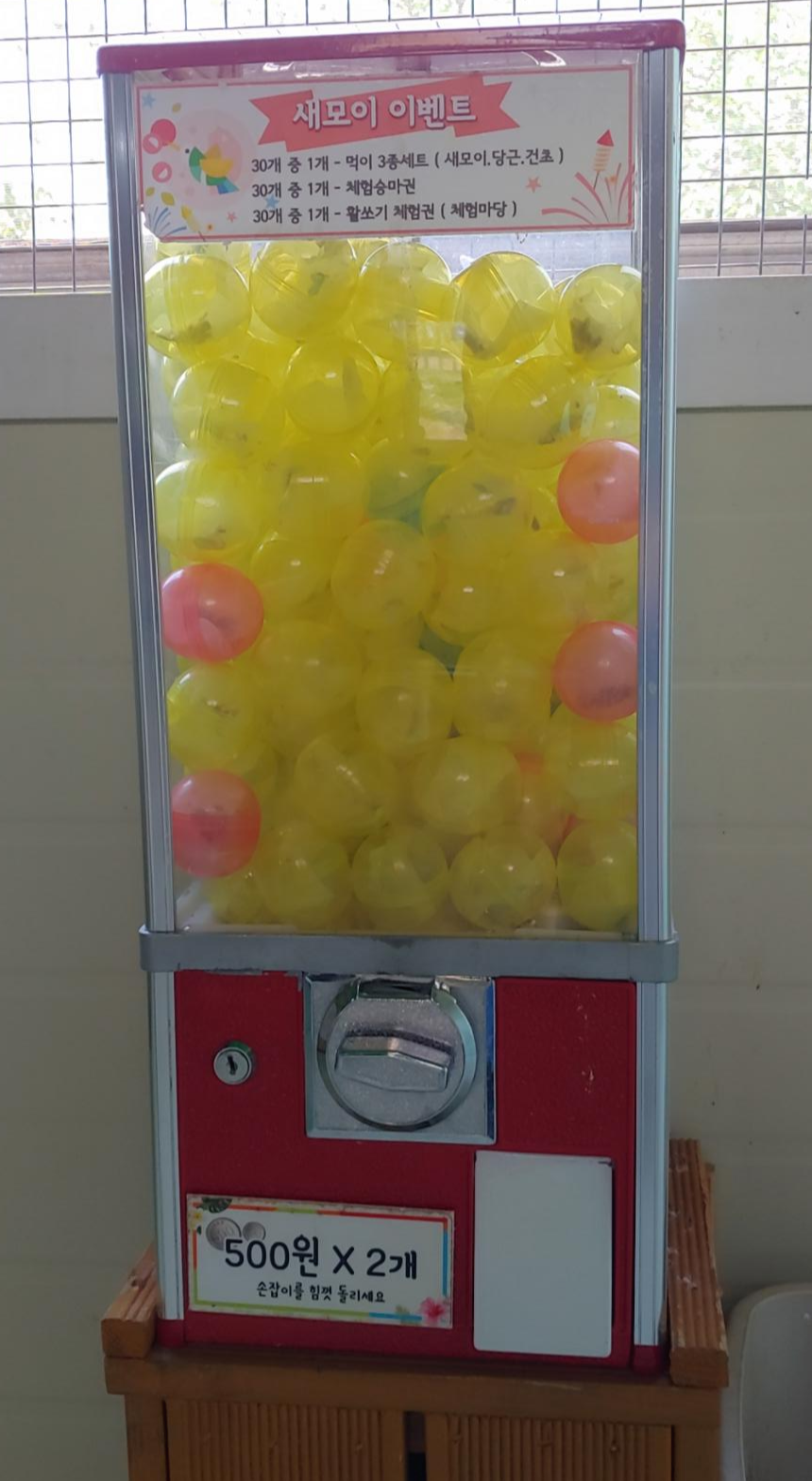 새모이는 가챠와 비슷한곳에 들어 있으며 모이 판매기 근처에 500원 동전으로 바꾸는 기계가 있으며 그 동전 2개(1,000원)로 모이를 구매 하시면 됩니다