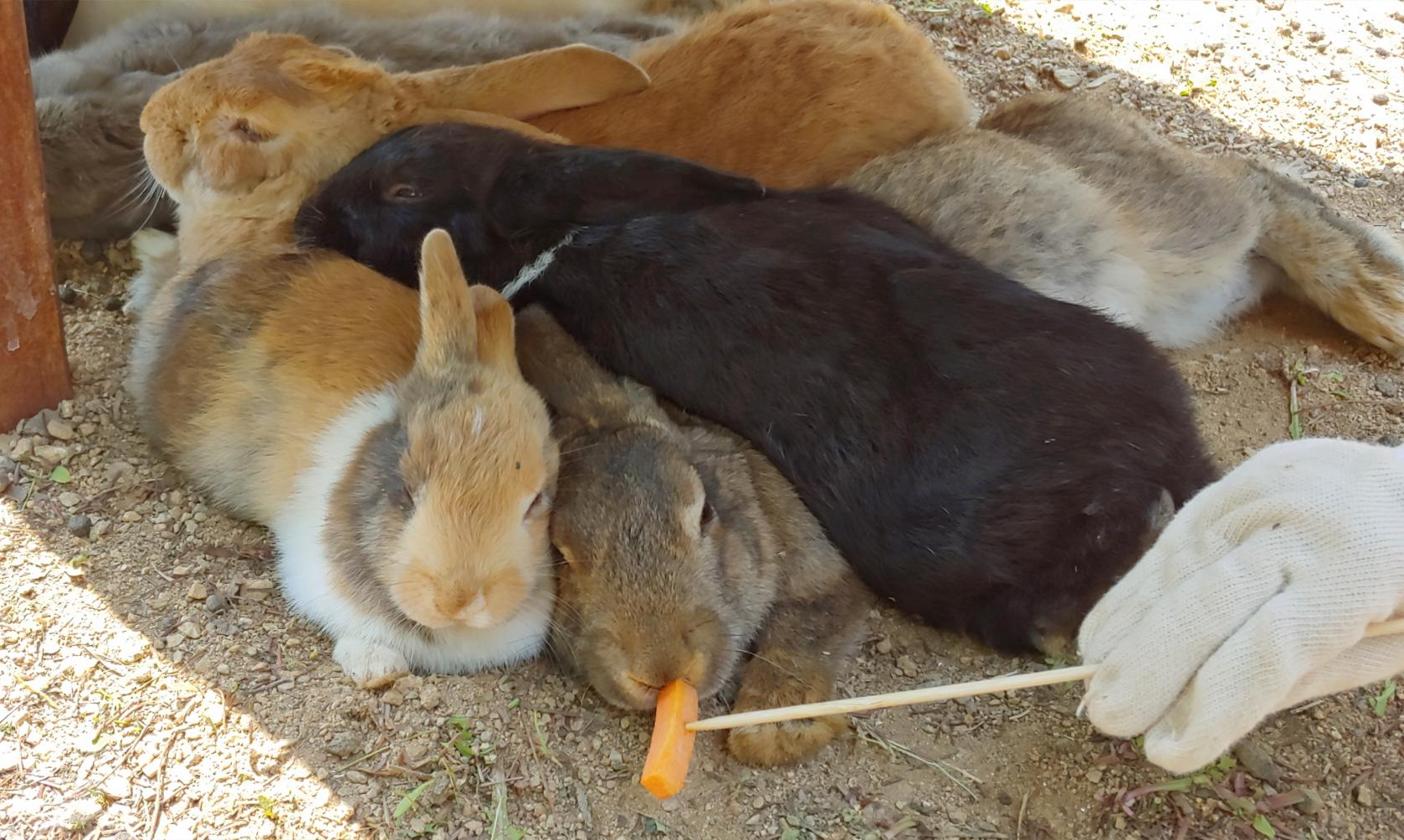많이 움직이는 토끼는 잘 보이지 않았고 주로 자고 있는 모습이었는데 당근을 입에 갖다 대면 일어나서 당근을 먹었습니다