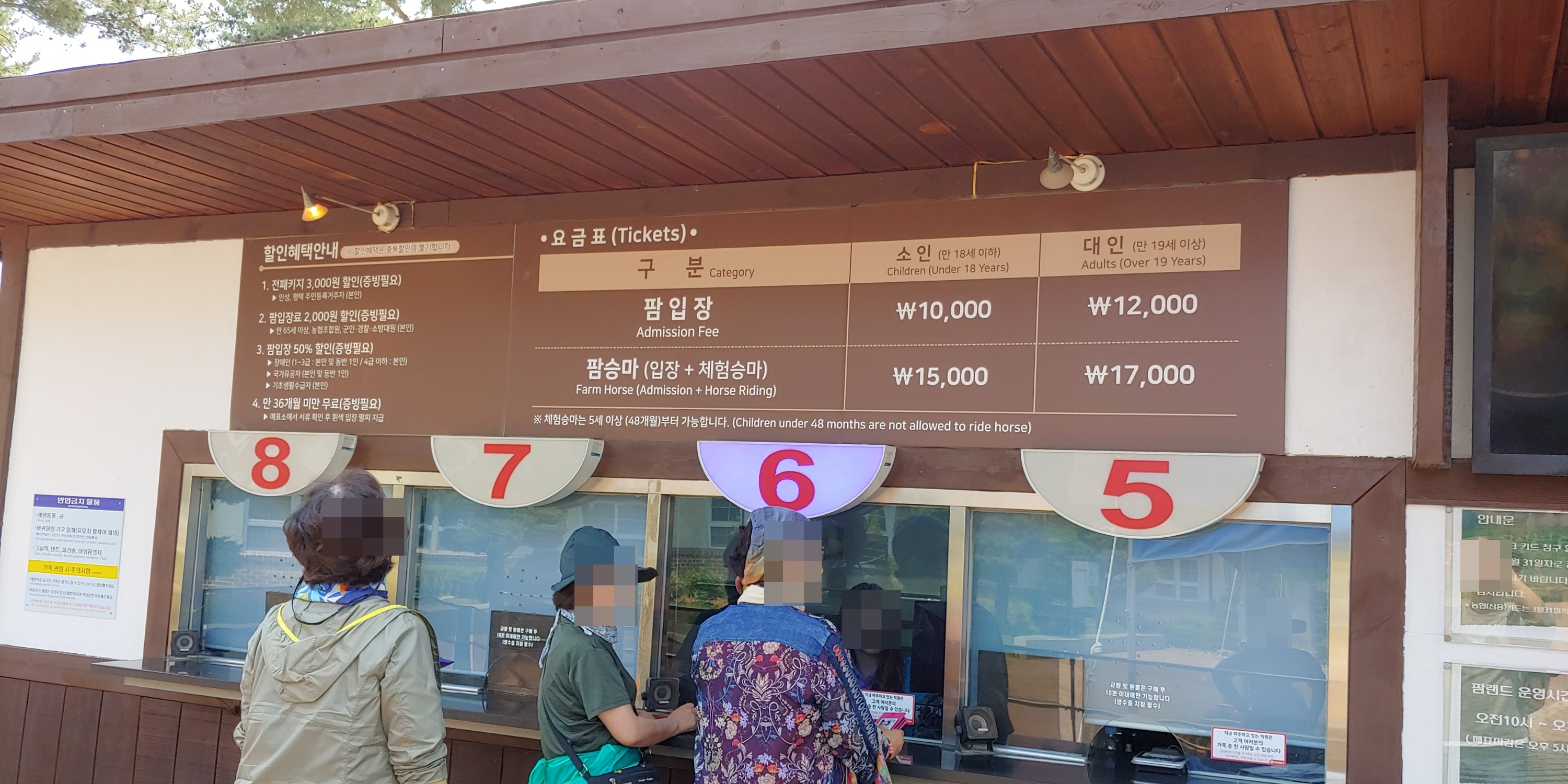 온라인 예매시 입장료는 소인 9,000원 / 대인 11,000원 이며 체험승마를 포함한 팜승마는 소인 14,000원 / 대인 16,000원 입니다