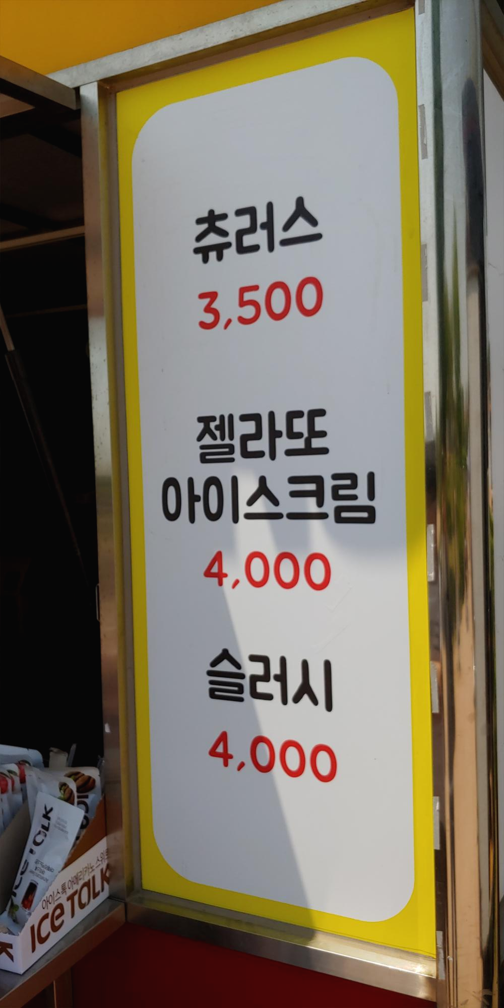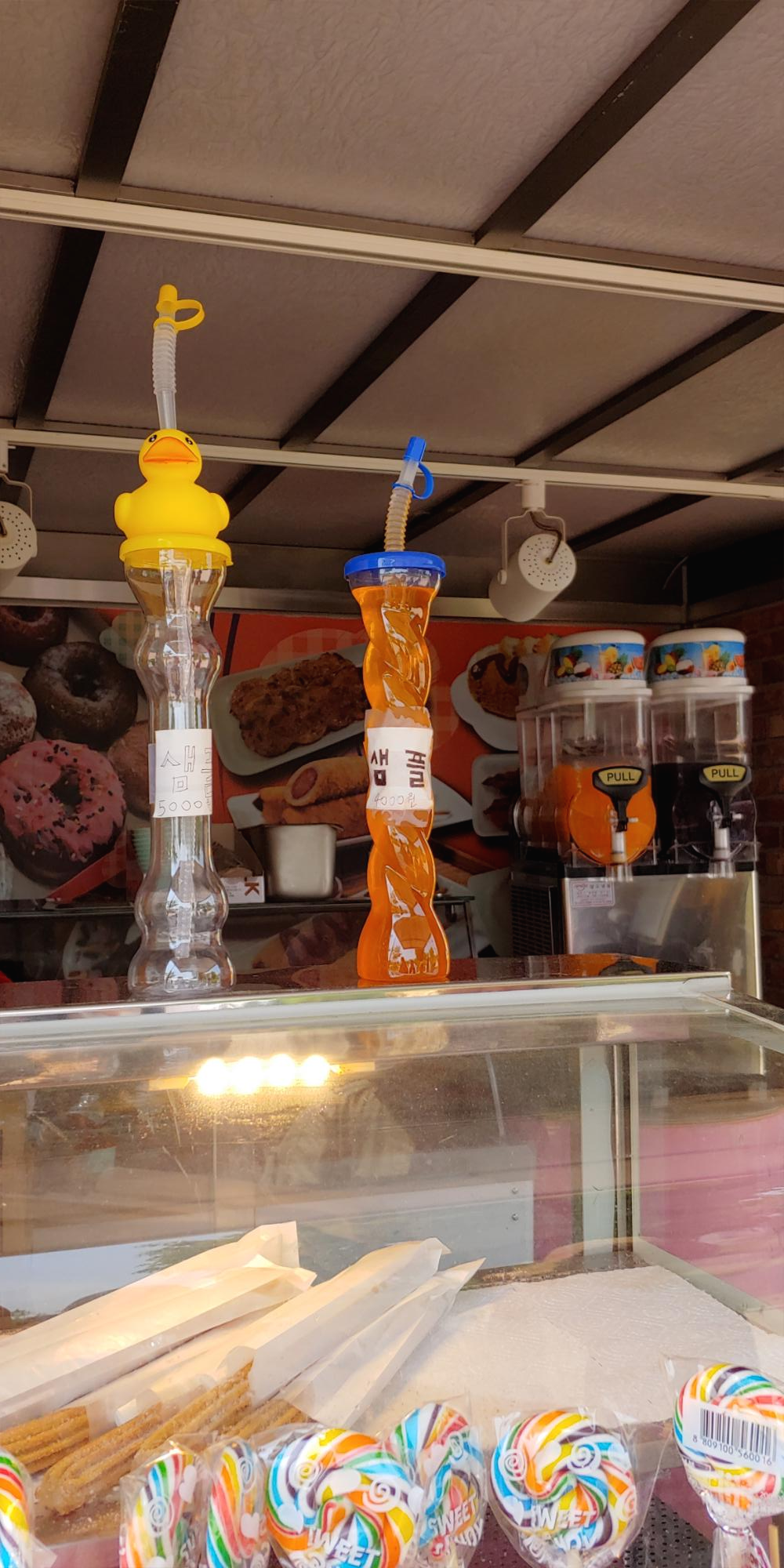 슬러시가 기본 4,000원 이였고 오리 인형이 붙어 있는 뚜껑에 슬러시를 넣으면 5,000원 이었습니다