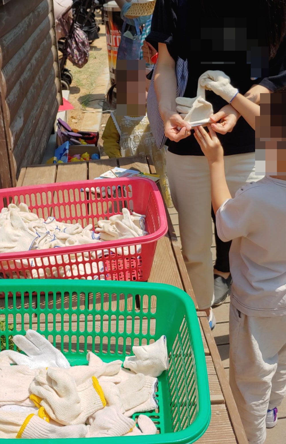 토끼마을 들어가는 입구 앞에 먹이(당근)를 판매하는 곳이 있고 혹시나 모를 위험을 방지하고자 장갑을 비치해뒀습니다