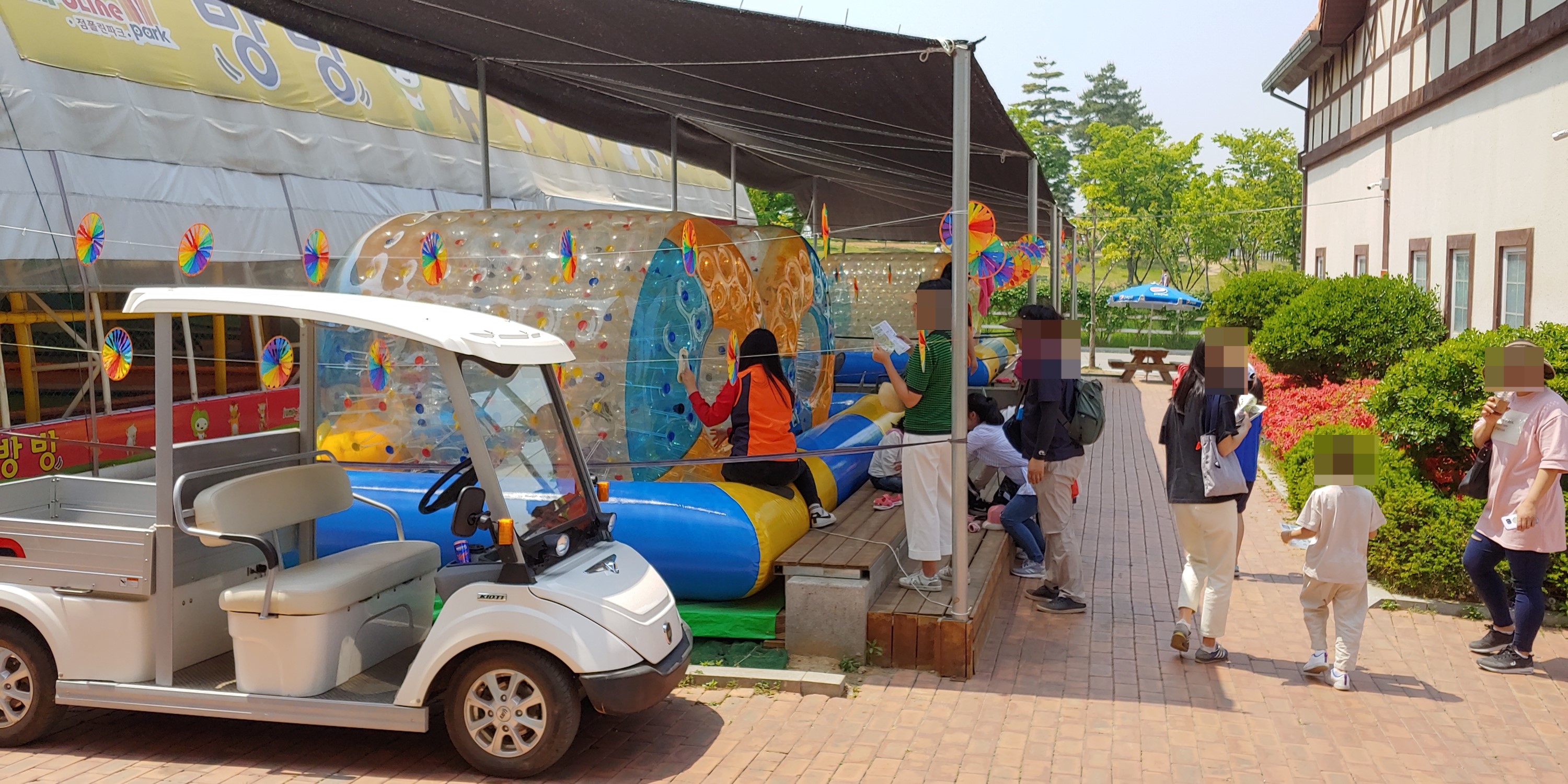 첫번째 스탬프를 찍은곳 앞에 방방이 있었는데 다른 놀거리가 많아서 그런지 방방을 이용하는 아이들은 없었습니다
