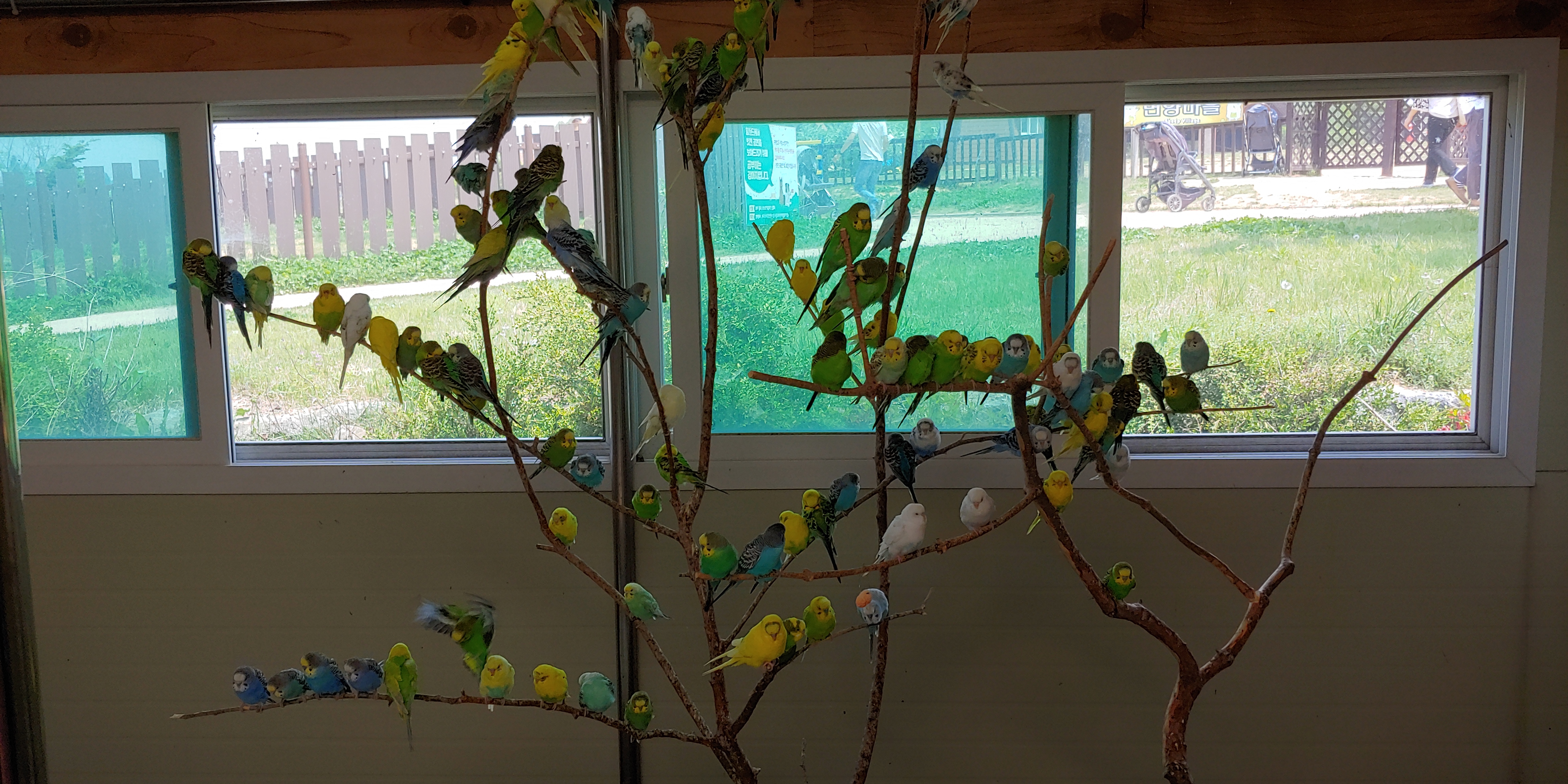 건물 2개중 한곳은 새들이 작은편이라 먹이를 주면서 걸어 다닐때 밟을수 있으니 조심해서 걸어 다녀야 합니다
