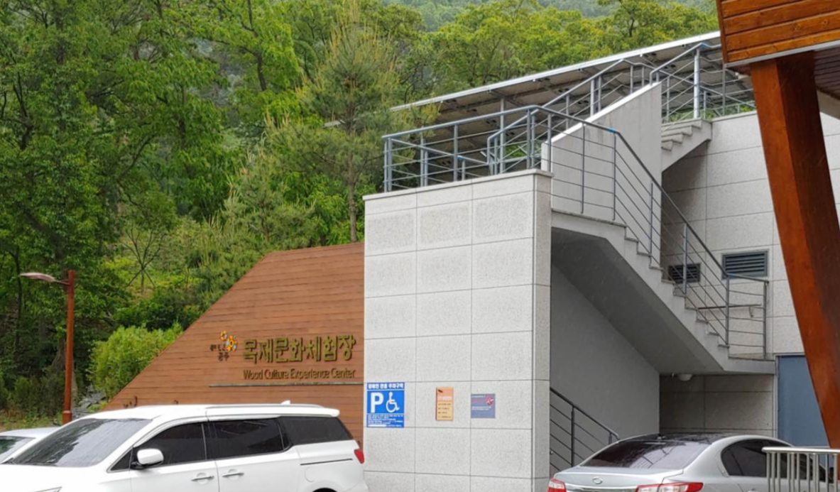 짐을 풀고 공주산림휴양마을 내에있는 목재 문화 체험장으로 갔습니다