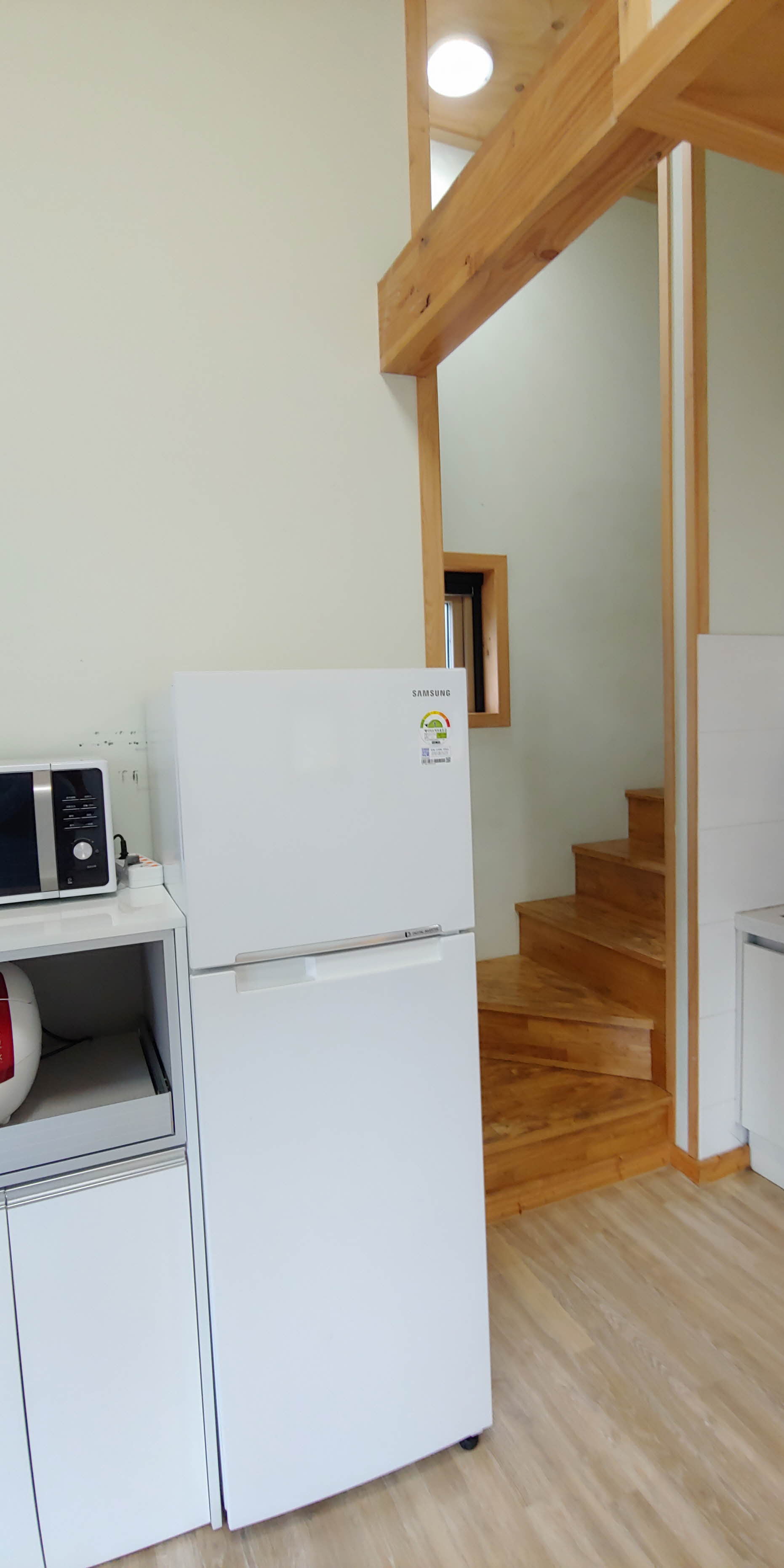 복층으로 올라가는 계단은 어린 아이에게는 좀 위험해 보였습니다