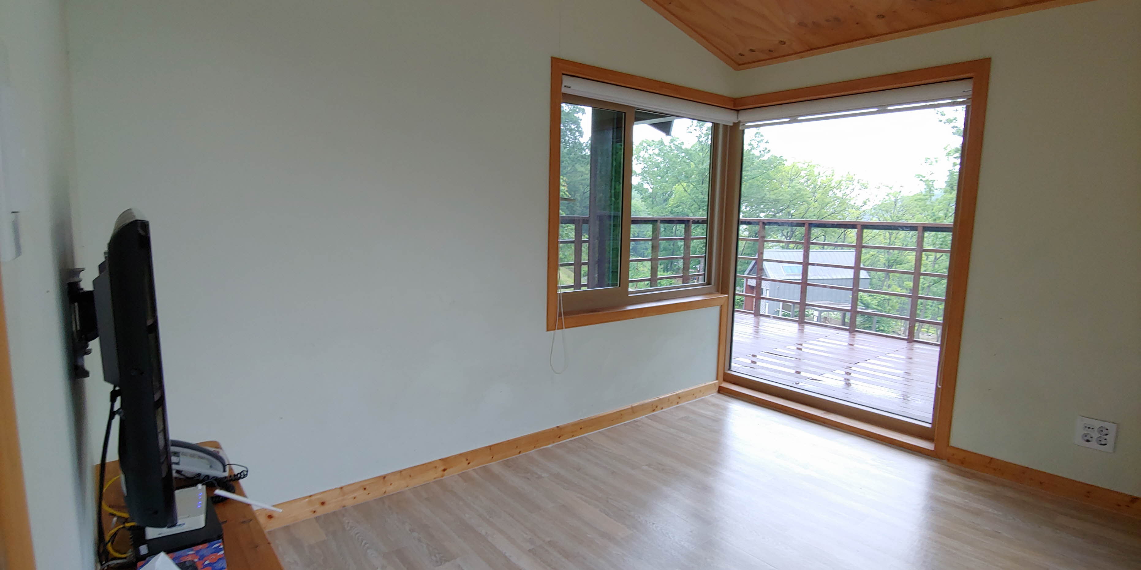 아래 사진처럼 안쪽으로 들어가면 작은 방이 있고 그안에 에어컨과 TV, 인터넷 공유기 등이 있었습니다