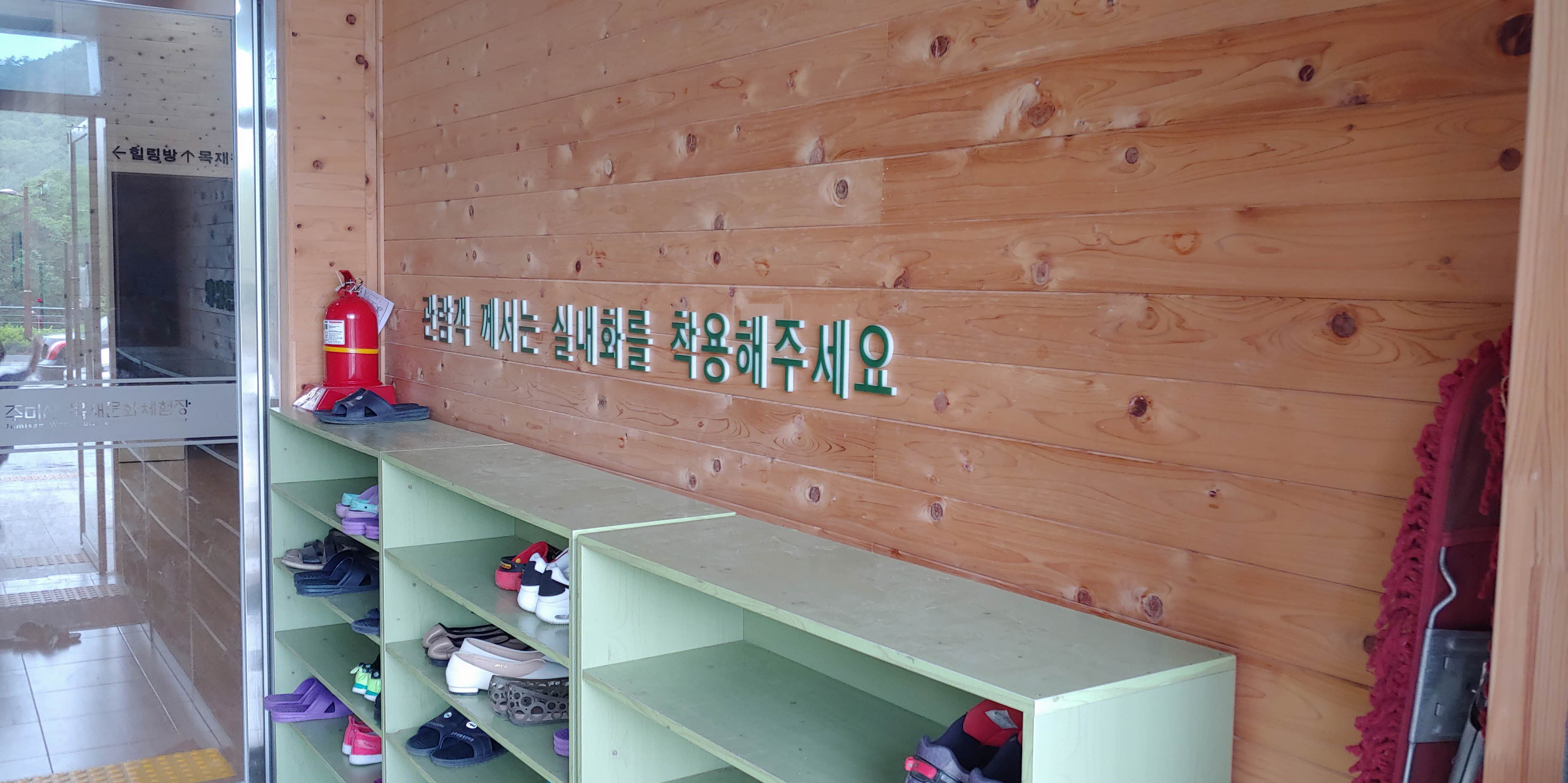 목재문화체험장을 들어서면 실내화가 비취되어 있었습니다