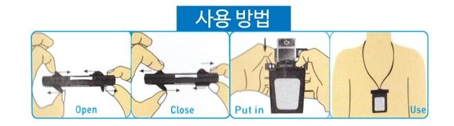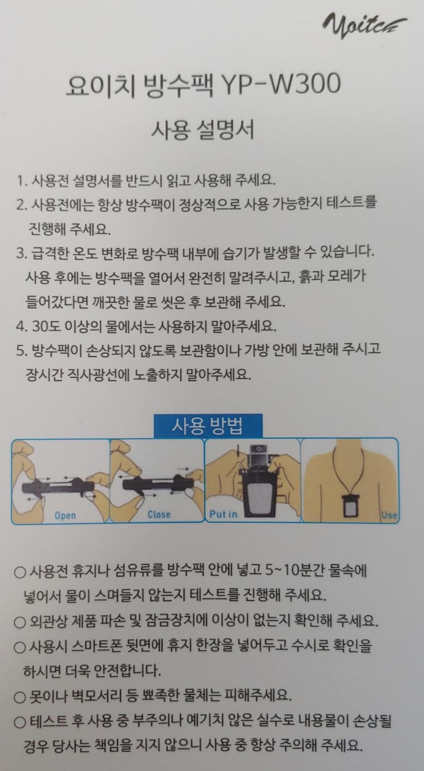 요이치 레릭 스마트폰 방수팩을 구매하면 상자안에 들어있는 사용 설명서 입니다