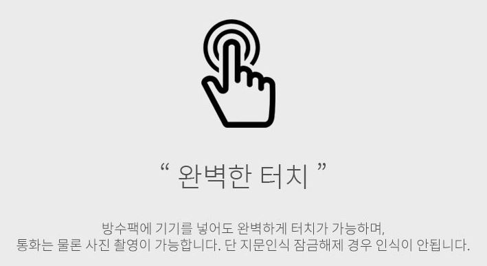 방수팩에 기기를 넣어도 터치가 가능하며 통화는 물론 사진 촬영이 가능합니다