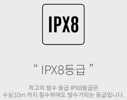 최고의 방수 등급 IPX8 등급은 수심 10m 까지 잠수하여도 방수가 되는 등급입니다