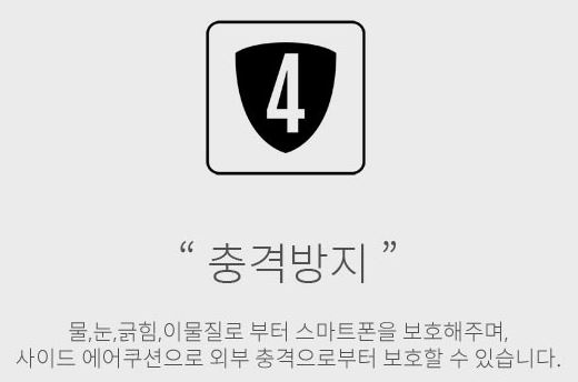 물, 눈, 긁힘, 이물질로 부터 스마트폰을 보호해주며 사이드 에어쿠션으로 외부 충격으로 부터 보호 할 수 있습니다