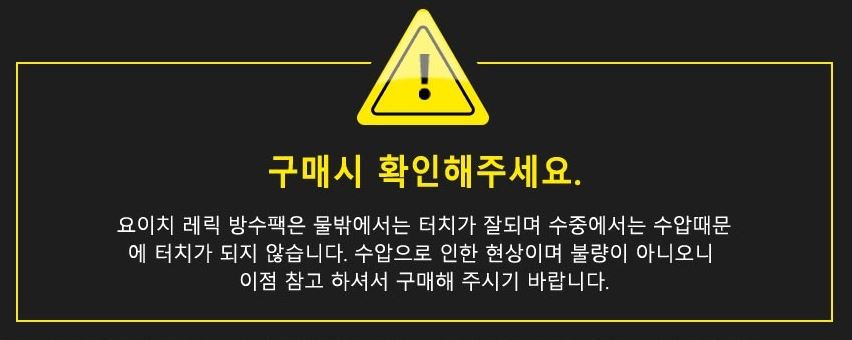 요이치 레릭 방수팩은 물밖에서는 터치가 잘되며 수중에서는 수압때문에 터치가 되지 않습니다