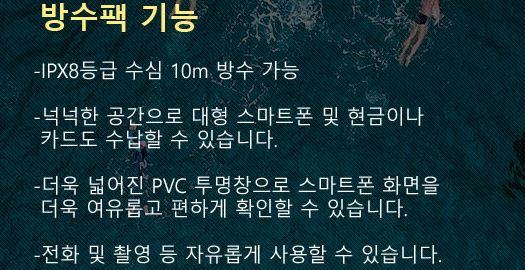 방수 : IPX8 등급 (수심 10m 까지 방수 가능)
