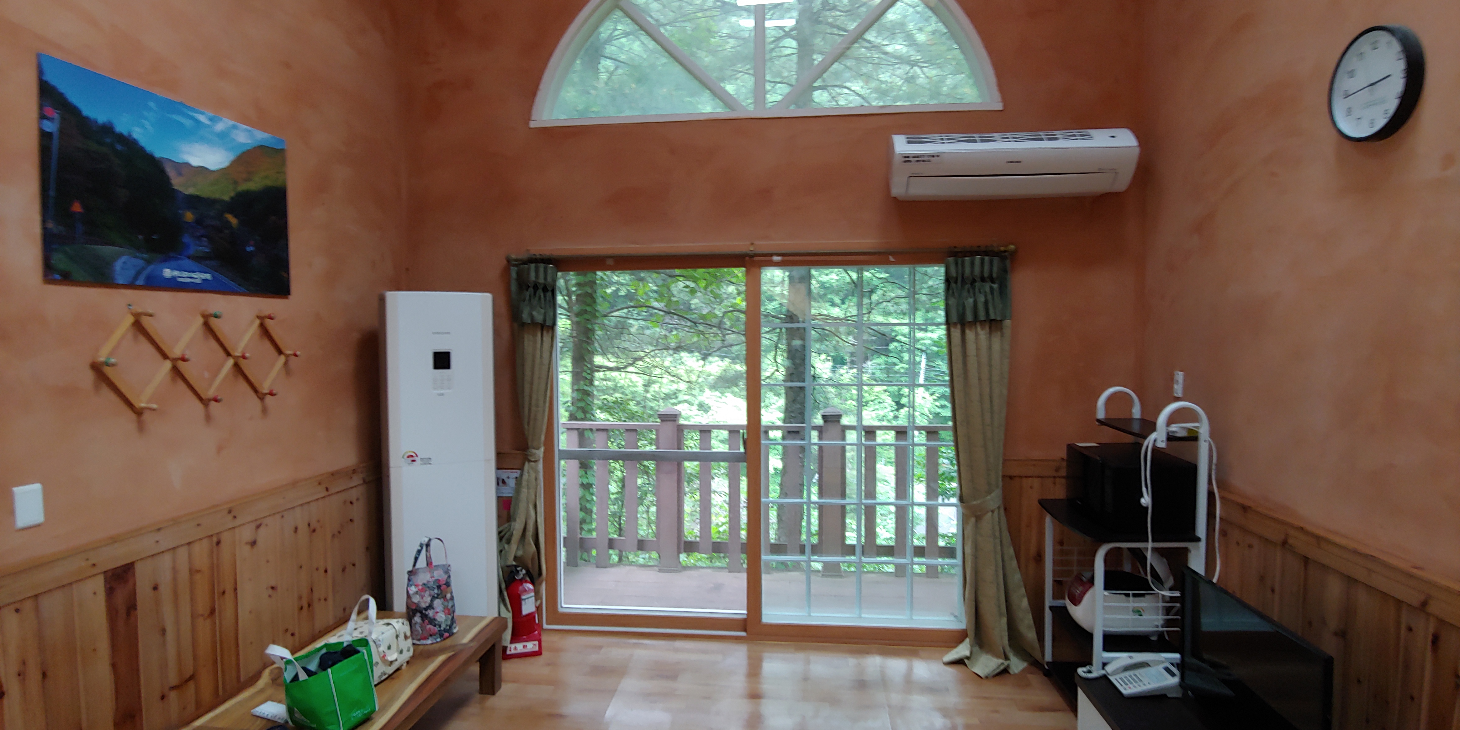 아래 사진에 왼쪽에 스탠드형이 에어컨이였고 오른쪽 상단에 벽걸이 에어컨 같이 생긴게 온풍기 였습니다