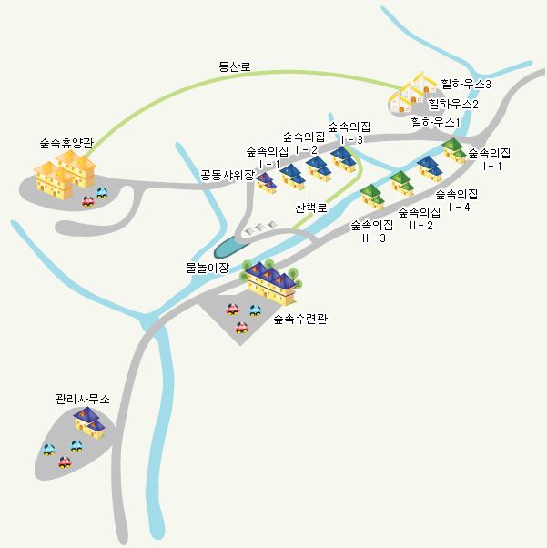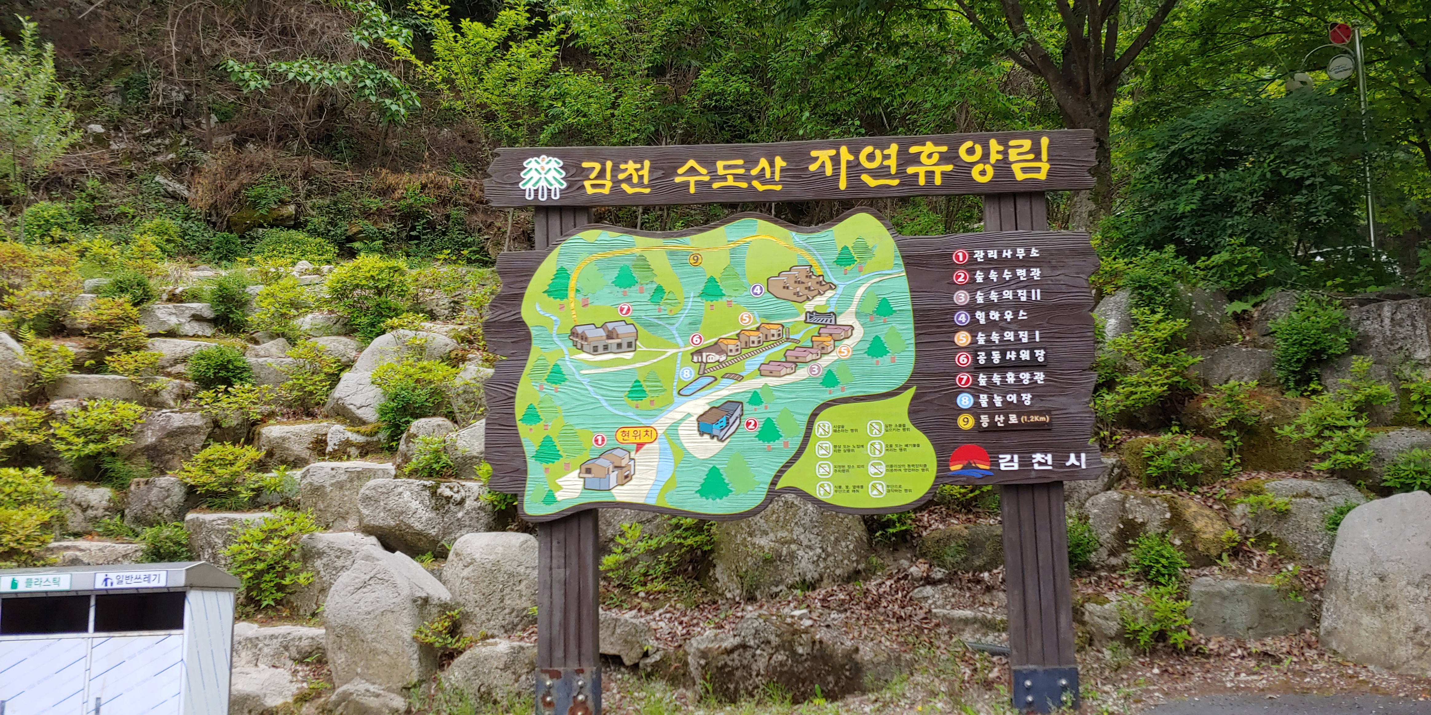 관리사무소를 지나 진입하면 왼쪽에 김천 수도산 자연휴양림 배치도가 보입니다