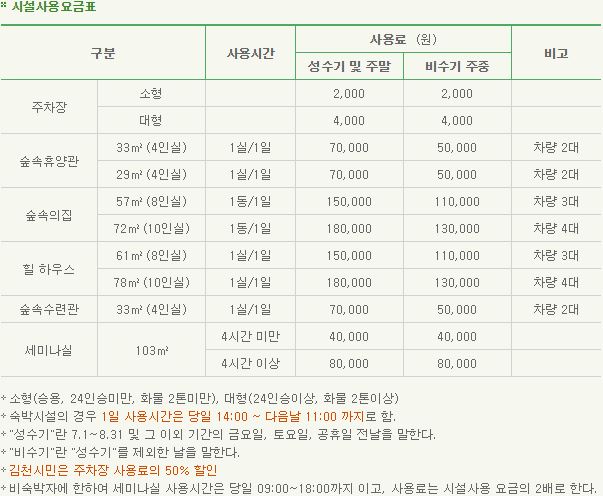 시설 사용 요금표