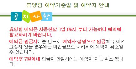 휴양림 예약 기준일 및 예약자 안내