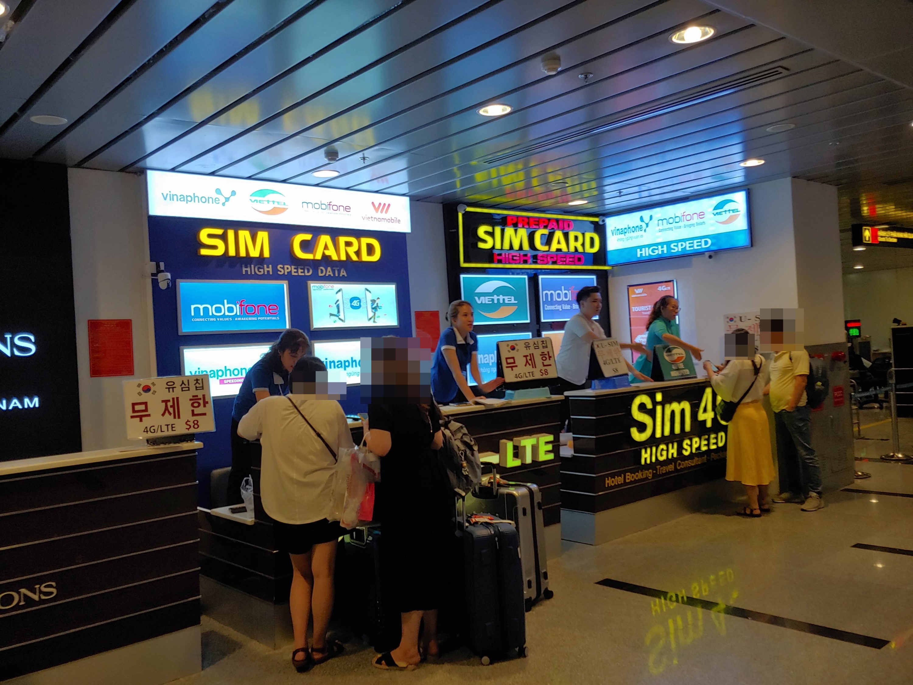 다낭 입국시 제일 먼저 보이는 곳이 유심 카드 판매 하는 곳이 보입니다