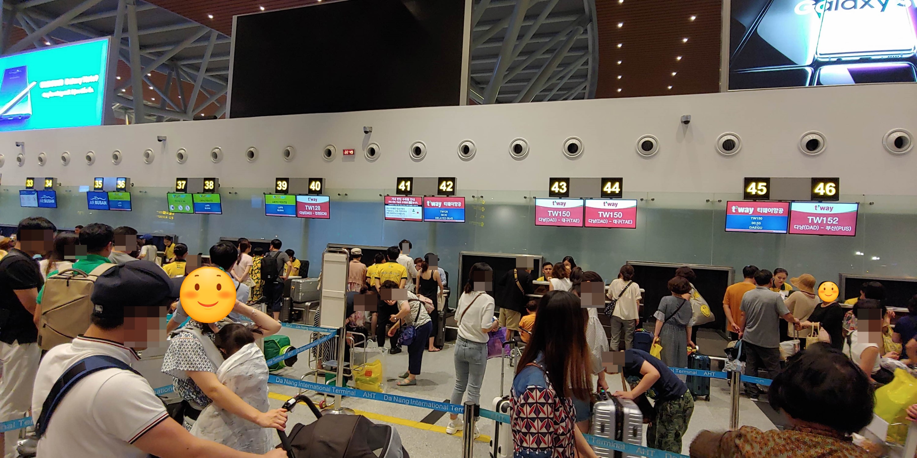 다낭 국제 공항에는 셀프 체크인(Self check in) 기기가 없어서 줄을 서야됩니다
