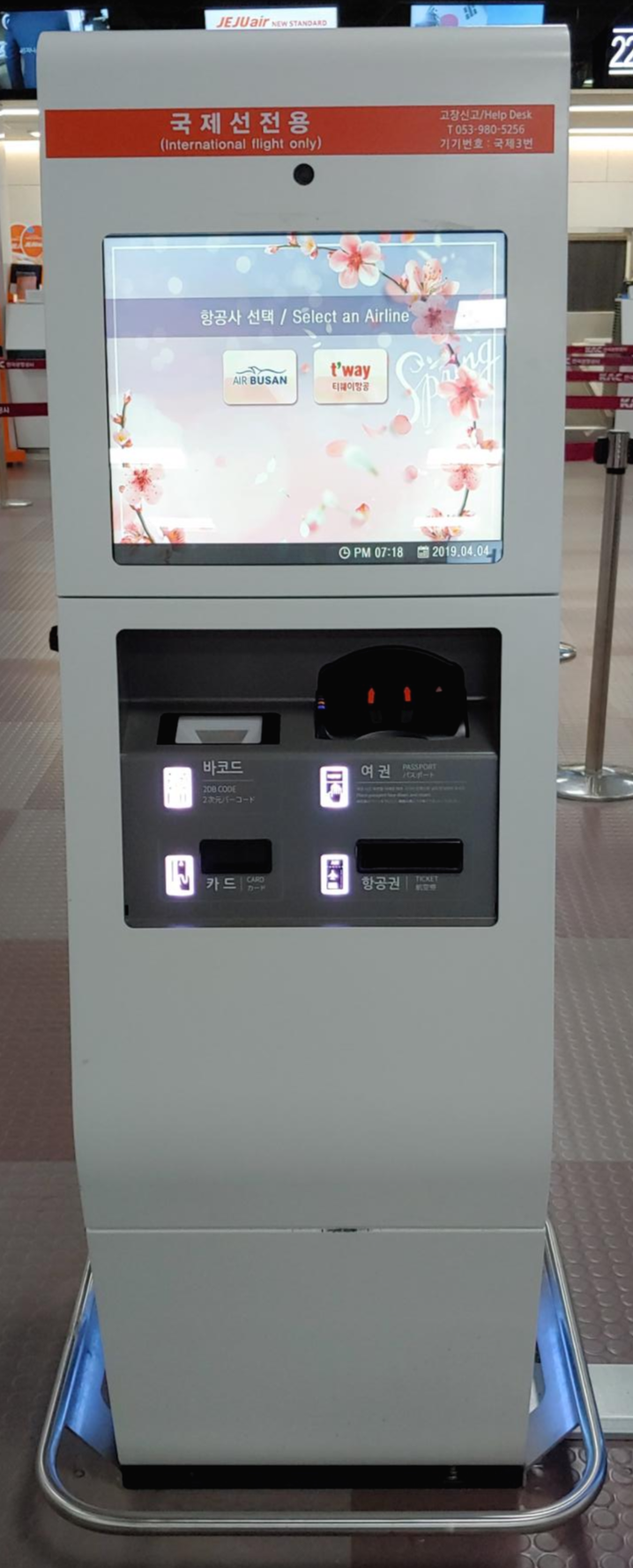 이용하는 항공사 앞 셀프 체크인(Self check in) 국제선전용 기기에는 이용객이 많아서 반대편의 셀프 체크인(Self check in) 기기를 보니 이용객이 없어서 반대편 기기에서 셀프 체크인(Self check in)을 했습니다