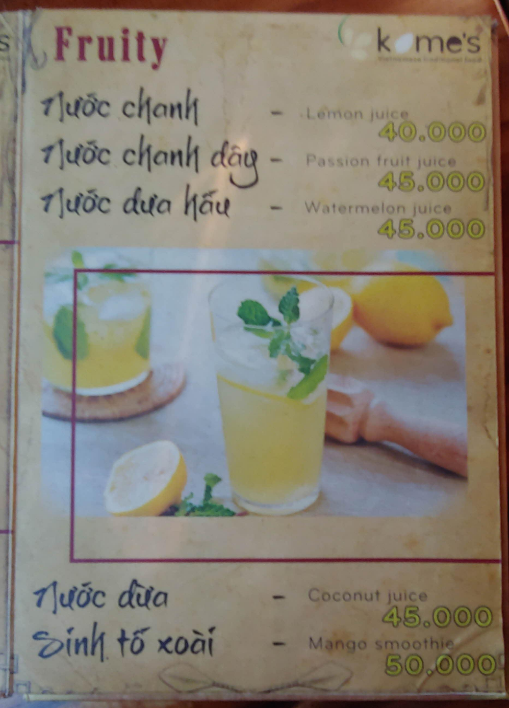 코메스(KOMES)의 메뉴를 상세하게 사진으로 찍어왔습니다