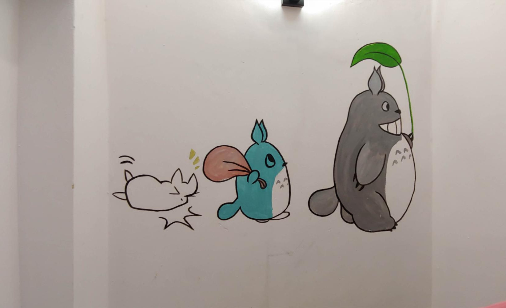 식당의 내부에는 2층으로 올라가는 곳에 사진을 찍을수 있게 그림을 그려놨습니다