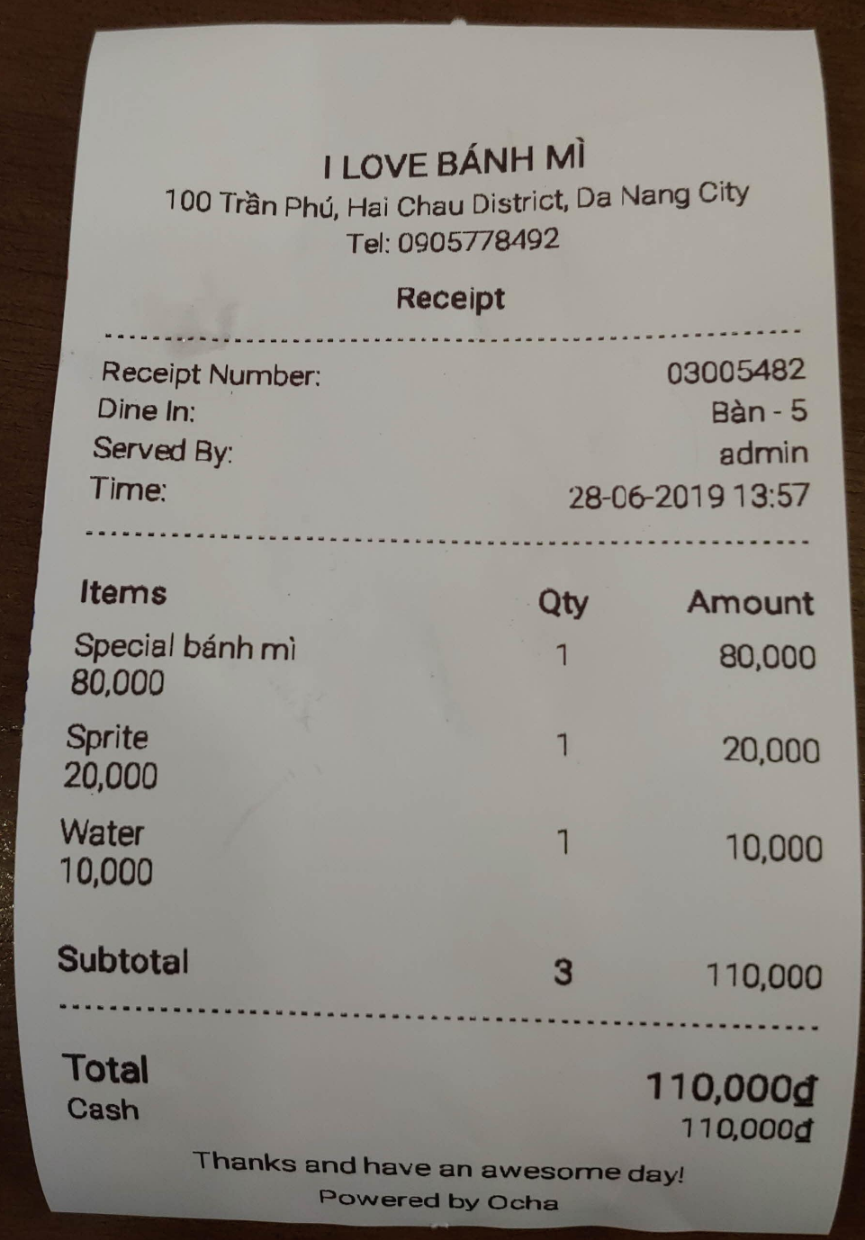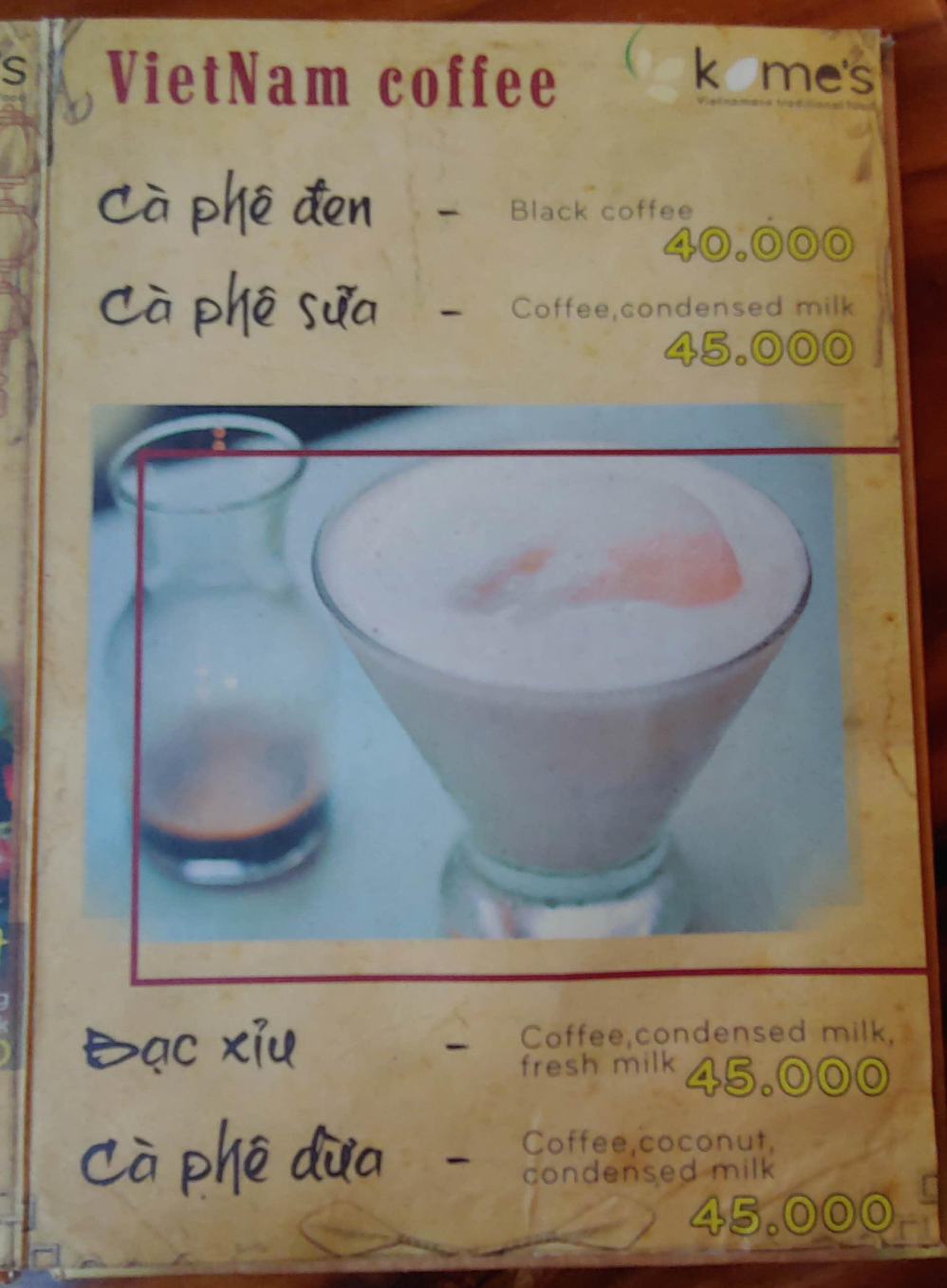식사 후 커피 테이크 아웃 까지 포함해서 32만5천동(16,250원) 나왔습니다