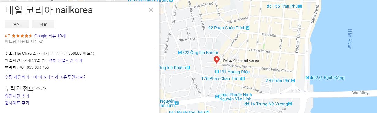 네일 코리아(NAILKOREA) 영업시간 오전 10시 ~ 오후 9시(라스트 오더 오후 8시) 입니다