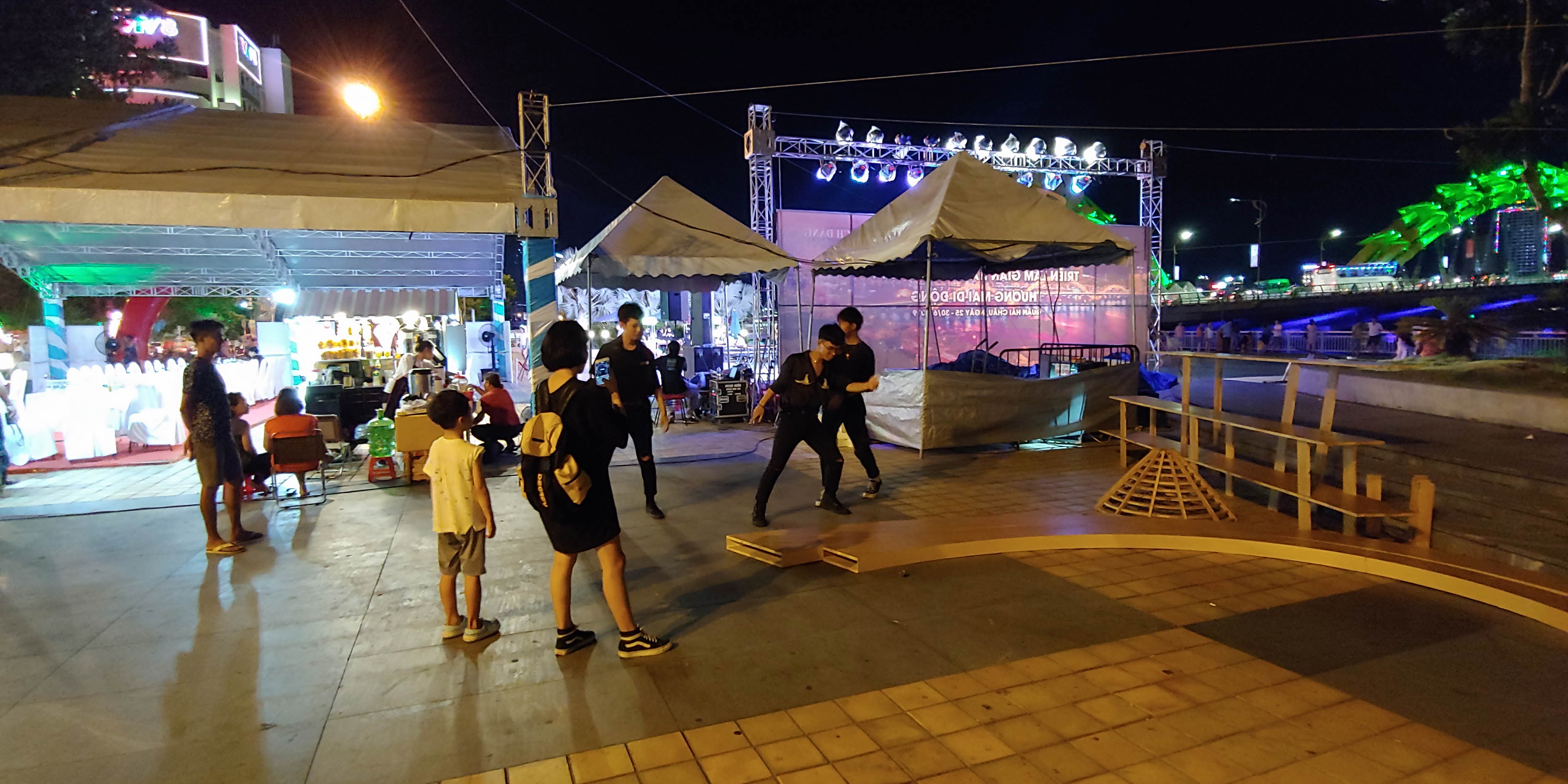 길거리 음식을 판매하는 곳 옆 무대가 설치 되어 있었고 그 뒤에서 춤연습을 하는 사람들을 볼 수 있었습니다