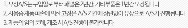 무상 A/S는 구입일로 부터 패널은 2년간 기타 부품은 1년간 보장 됩니다