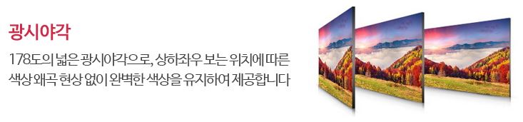 넓은 시야각으로 어느 각도에서나 동일한 색감과 선명한 화질을 감상 할 수 있습니다