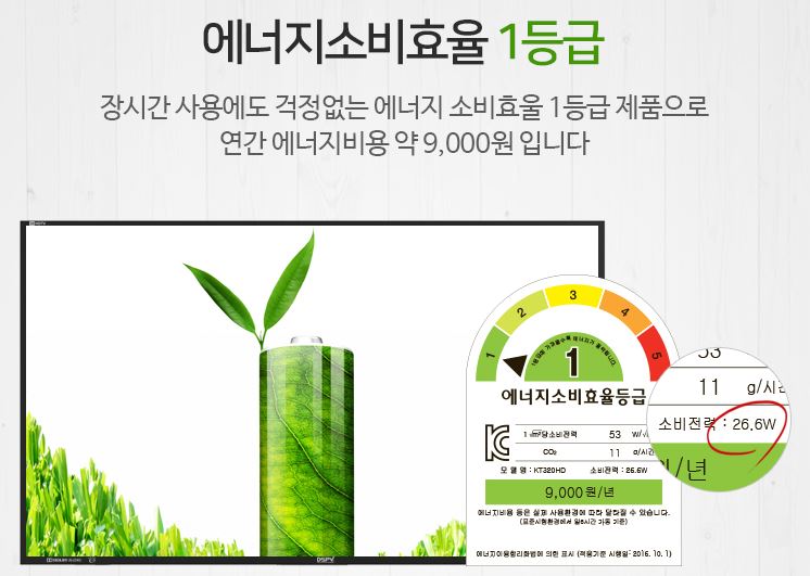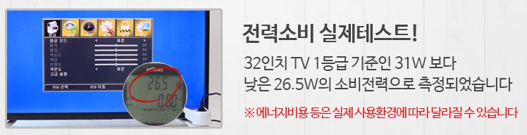 32인치 TV 1등급 기준인 31W 보다 낮은 26.5W의 소비 전력으로 측정 되었습니다