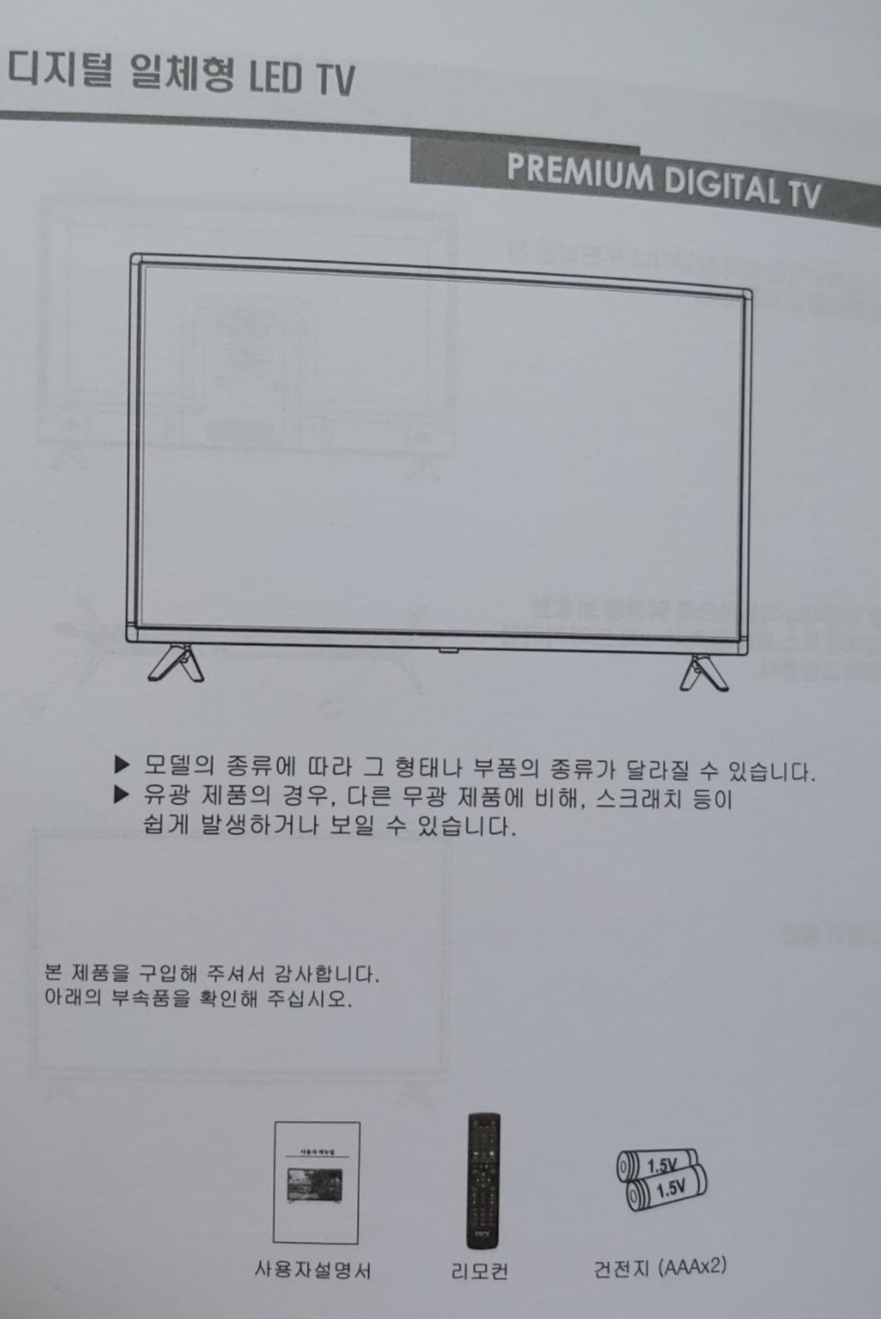 사용설명서, 리모컨, 스탠드 및 조립나사