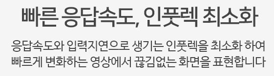 응답 속도와 입력 지연으로 생기는 인풋렉을 최소화 하여 빠르게 변화하는 영상에서 끊김 없는 화면을 표현합니다