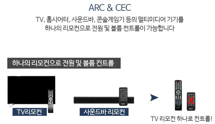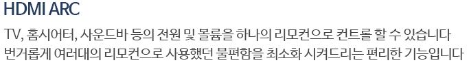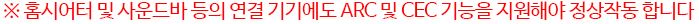 ※ 홈시어터 및 사운드바 등의 연결 기기에도 ARC 및 CEC 기능을 지원해야 정상 작동 합니다